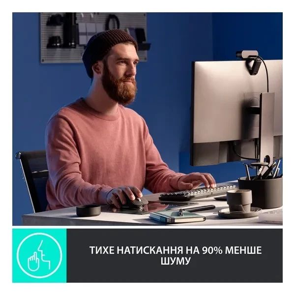 - Технологія Quiet Clicks знижує шум клацань на 90%, зберігаючи звичне тактильне відчуття.