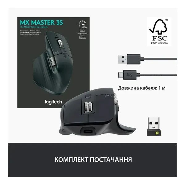 Бездротова миша Logitech MX Master 3S, 8000DPI, Graphite (910-006557, 910-006559)