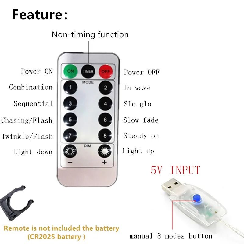 Працює від USB, що робить використання максимально зручним — гірлянду можна підключити до адаптера, ноутбука, повербанка або іншого джерела живлення з USB-роз'ємом. Управління здійснюється за допомогою пульта дистанційного керування, який дозволяє перемикати режими та регулювати освітлення на відстані.
