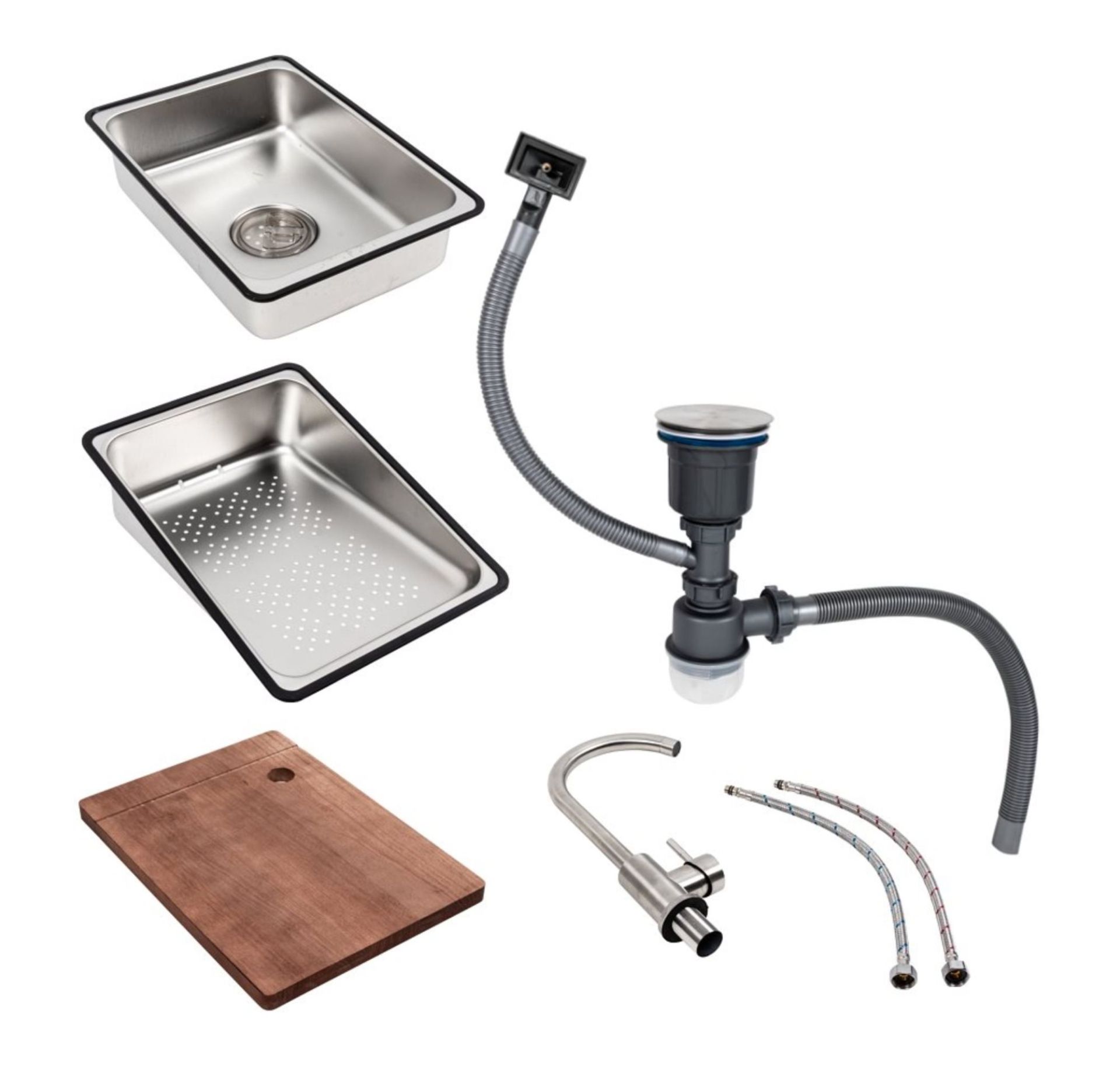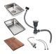 У комплекті ви отримуєте все необхідне для комфортної роботи: стильний змішувач, дві зручні кошики для сушіння та миття овочів, а також функціональну дерев'яну дошку, яка ідеально лягає на бортики мийки, збільшуючи робочий простір. Також в набір входять сифон та кріплення, що забезпечують легкість монтажу. Кухонна мийка VALESO Handmade CM 75*46B Workstation — це ідеальне рішення для тих, хто цінує якість, практичність та сучасний дизайн.