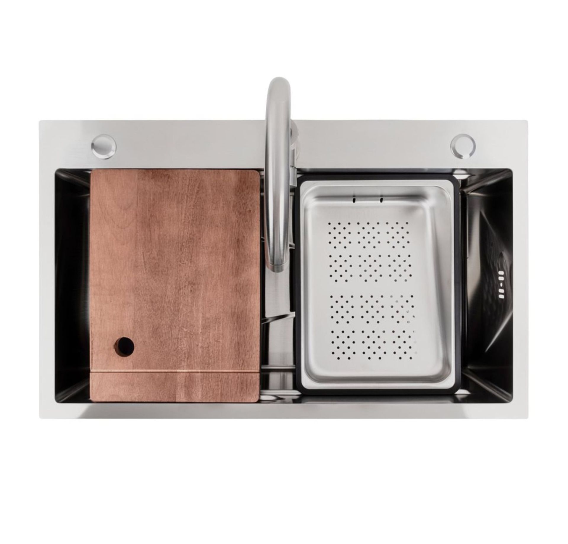 Виготовлена з високоякісної нержавіючої сталі SUS 201, ця мийка вирізняється неперевершеною міцністю та стійкістю до корозії. Товщина стінок 3,0 мм забезпечує надійність, а товщина 0,8 мм — оптимальний баланс ваги та довговічності. Простора чаша розміром 700х360х205 мм дозволяє легко мити великі каструлі та дека, а унікальна конструкція Workstation з інтегрованими бортиками дає змогу використовувати аксесуари безпосередньо над мийкою.