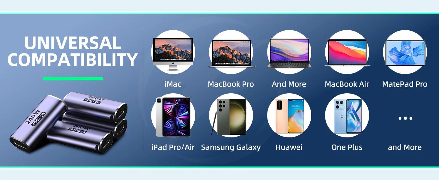- Підходить для будь-яких пристроїв із Type-C, включаючи ноутбуки, смартфони, планшети та периферійні аксесуари.