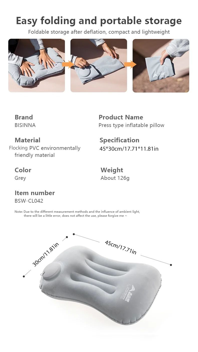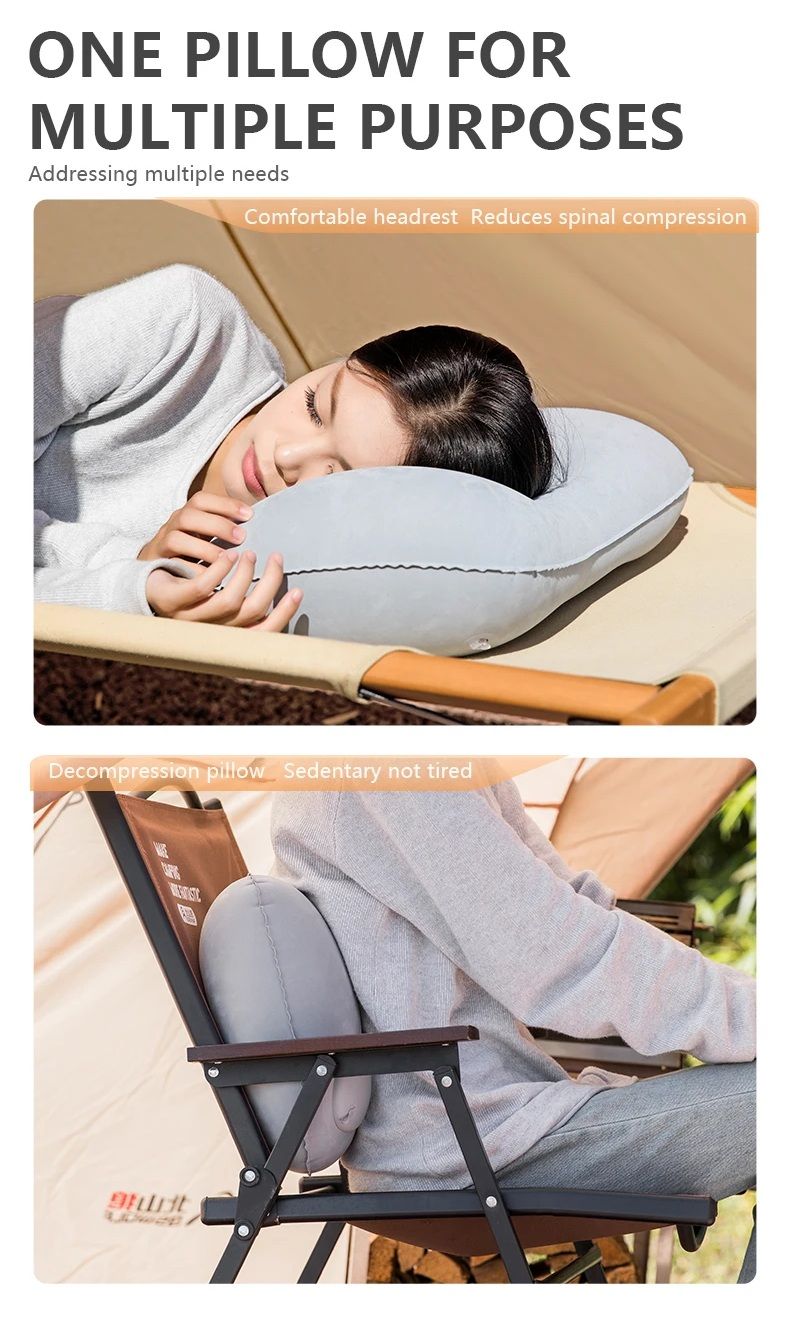 Ця надувна кемпінгова подушка BISINNA є ідеальним рішенням для мандрівників, туристів та любителів активного відпочинку. Модель поєднує компактність, легкість і продуманий ергономічний дизайн, забезпечуючи комфортну підтримку шиї та попереку в будь-яких умовах — в кемпінгу, в потягу, в літаку або навіть в офісі.