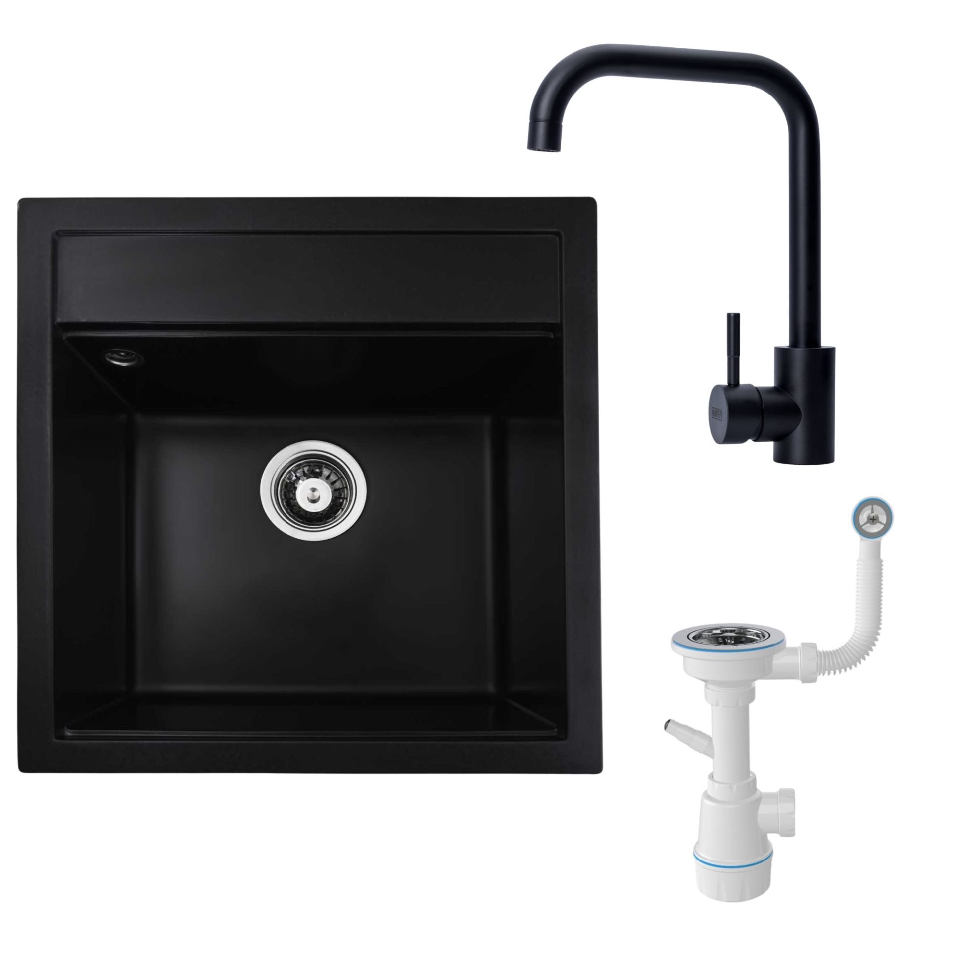 Кухонна мийка гранітна VALESO 5149 (чорна) + сифон 1041 + змішувач чорний BG77