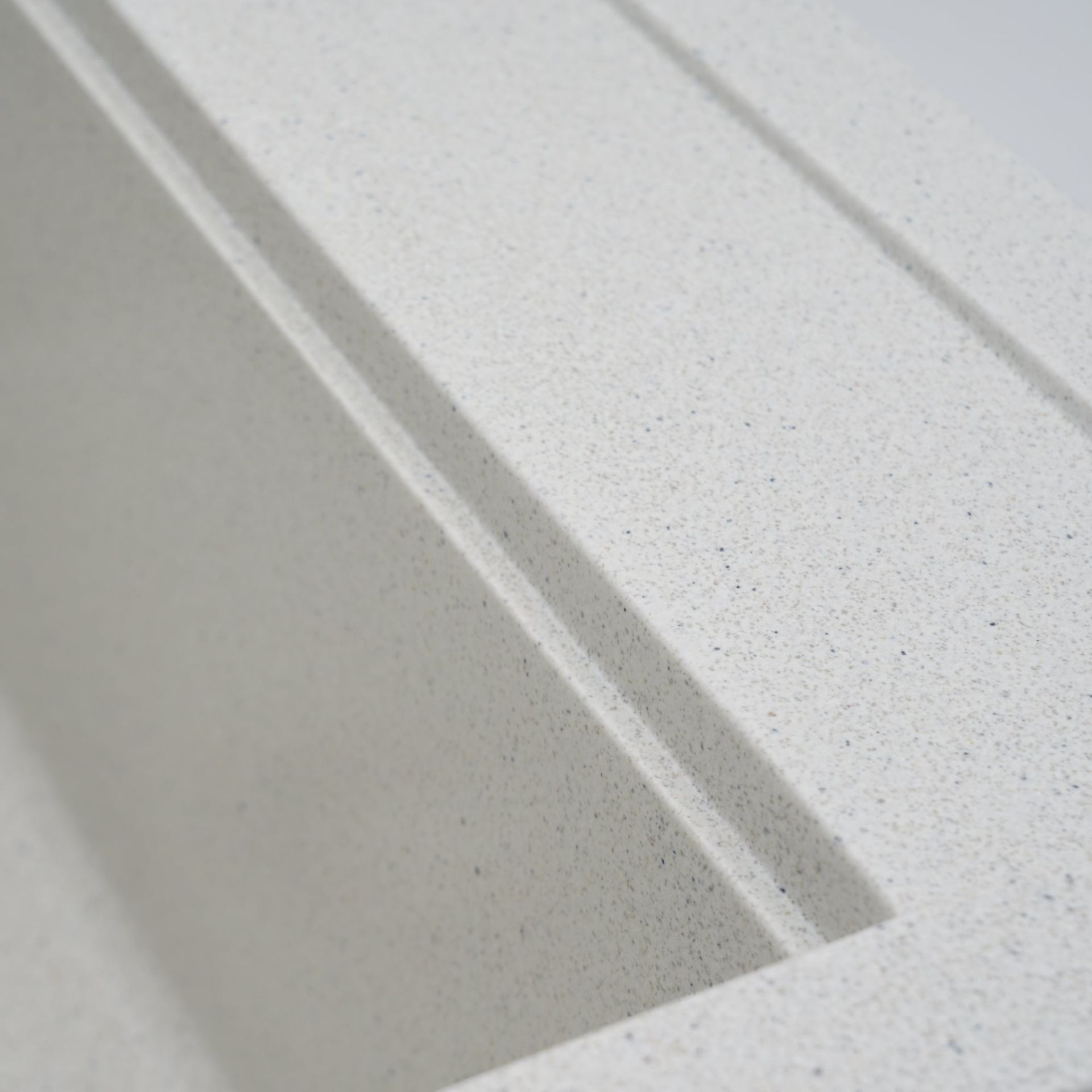 Ця врізна квадратна мийка стане справжньою окрасою вашої кухні. Вона на 80% складається з натурального кварцу та на 20% — з надзвичайно міцної акрилової смоли. Завдяки цьому мийка має високу міцність, невибаглива у догляді та зберігає свій бездоганний вигляд на довгі роки.