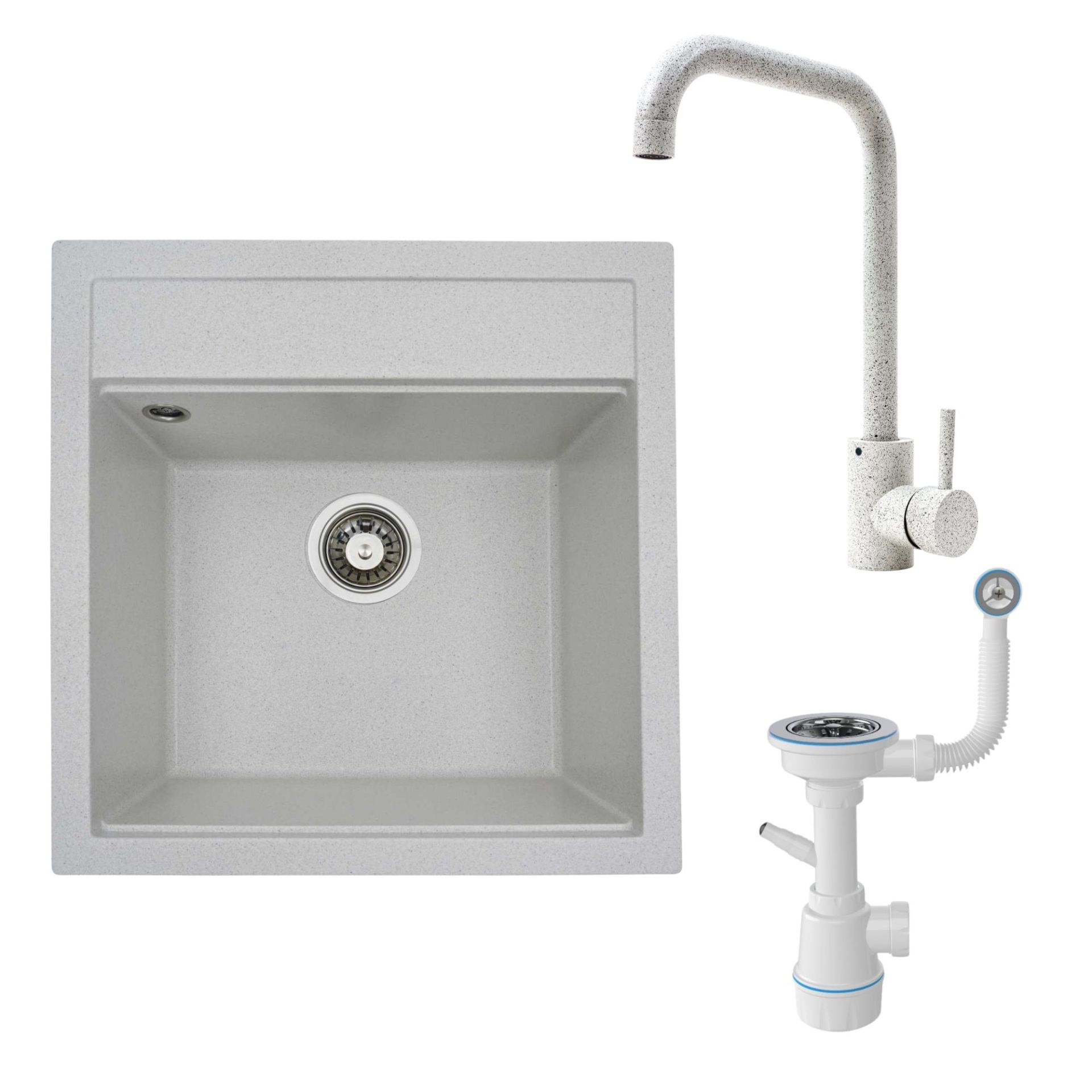 Комплект «Мийка FIESTA (біла в крапку) + сифон + змішувач (білий в крапку)» — Стиль та функціональність для вашої кухні