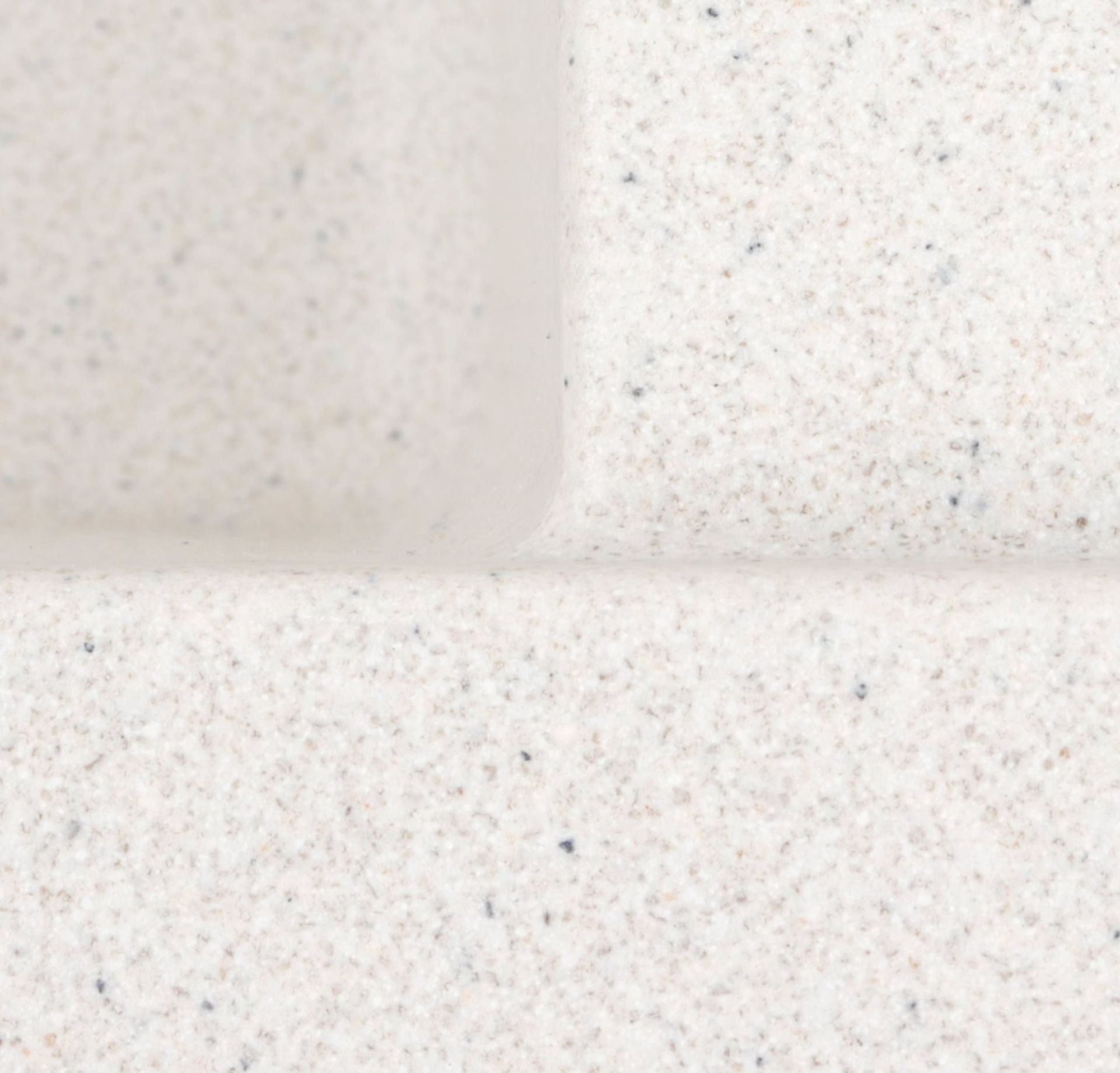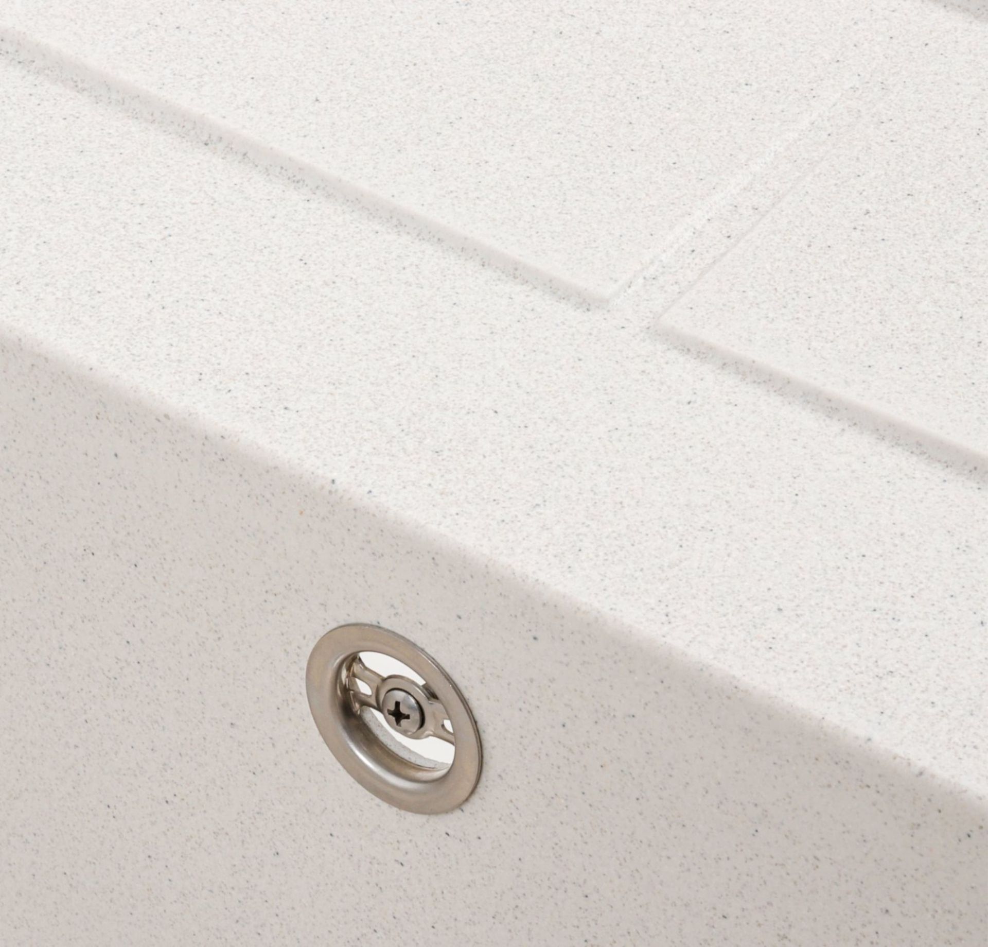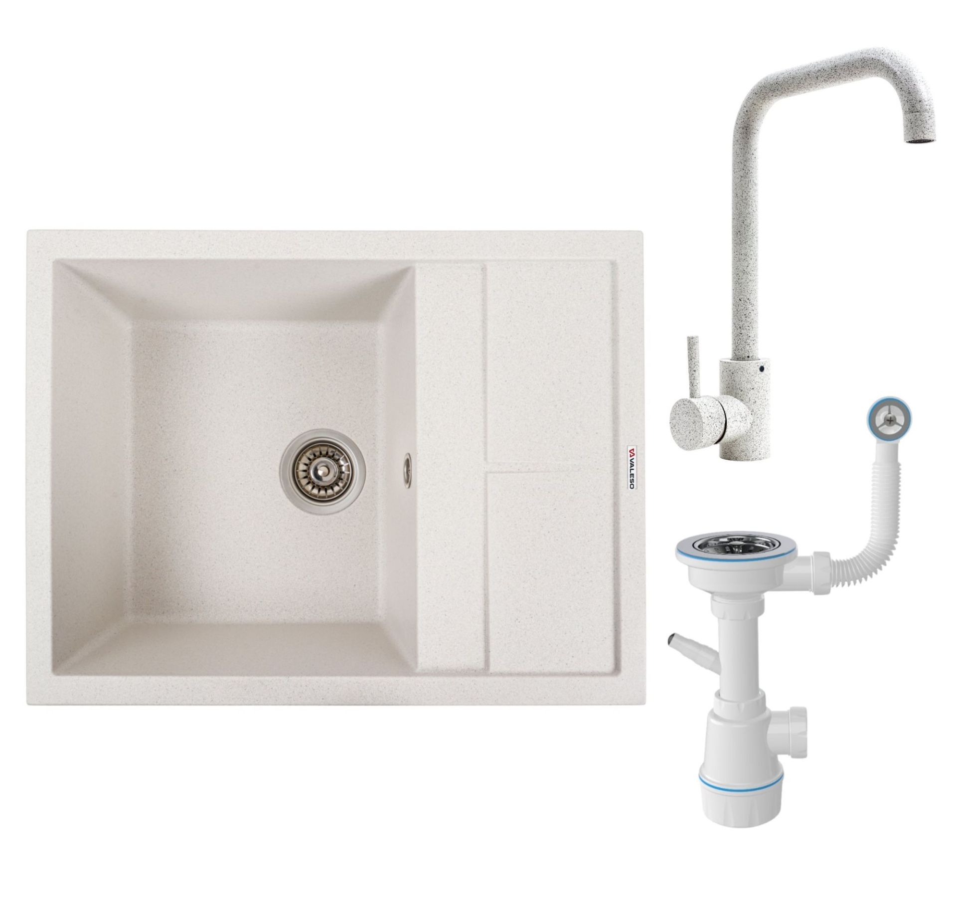 Компактна гранітна мийка VALESO 6550 LOTOS Серце цього набору — мийка VALESO 6550 LOTOS у кольорі "біла в крапку". Її компактні розміри (650x500x200 мм) ідеально підходять для невеликих кухонь, де кожен сантиметр простору на вагу золота. Виготовлена з 80% кварцового піску та 20% смоли, вона має приємну на дотик поверхню, що нагадує природний камінь, і стійка до пошкоджень. Зручна чаша (380х435х200 мм) і крило для сушіння роблять її надзвичайно практичною для щоденного використання.