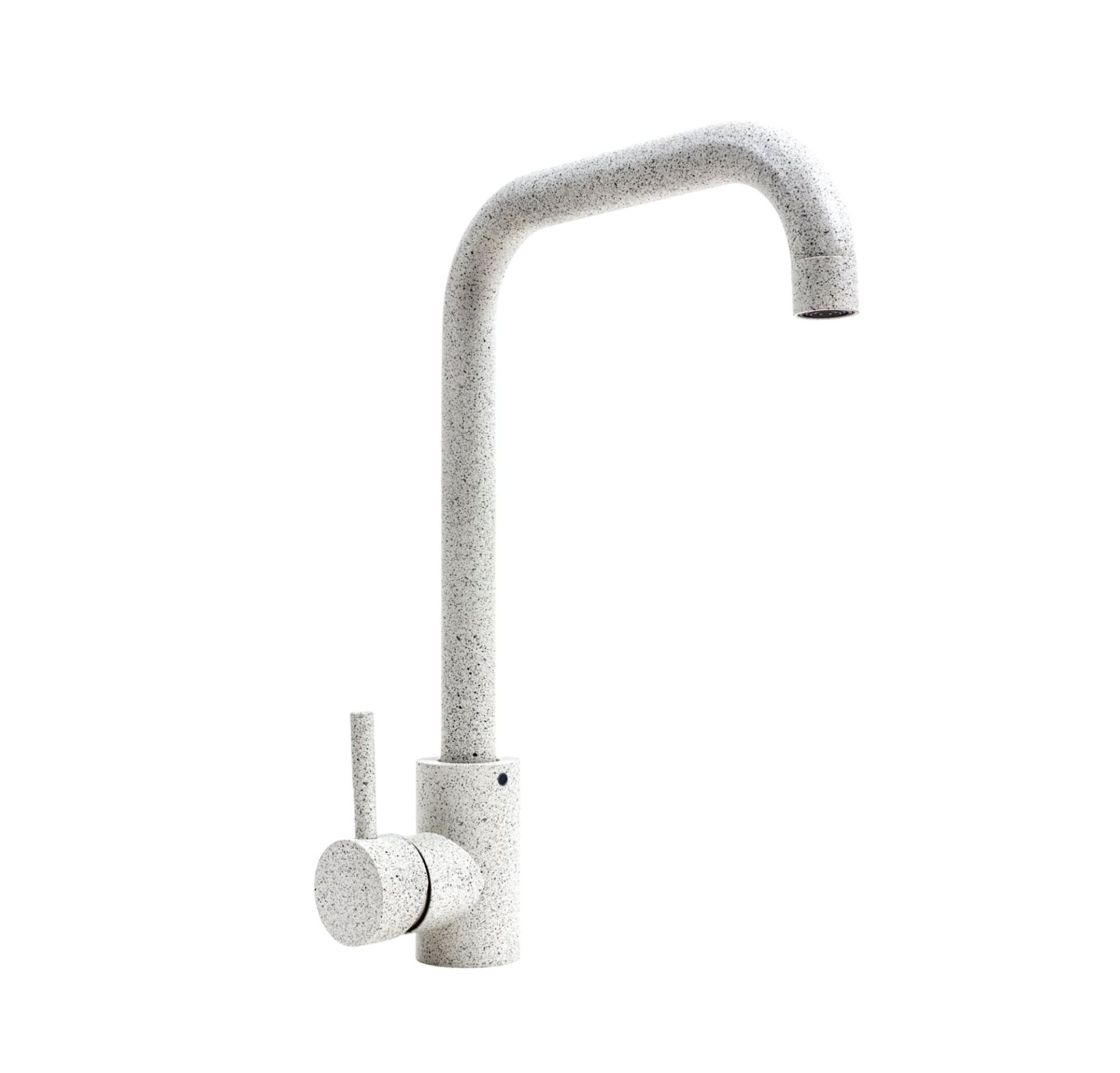 Функціональний змішувач NS02A Ідеальне доповнення до мийки — змішувач NS02A у тому ж елегантному кольорі "білий в крапку". Виготовлений із високоякісної нержавіючої сталі SUS304, він стійкий до корозії та забруднень. Висота 280 мм та довжина виливу 155 мм забезпечують максимальний комфорт при використанні, а 35-мм картридж гарантує плавне регулювання потоку води.