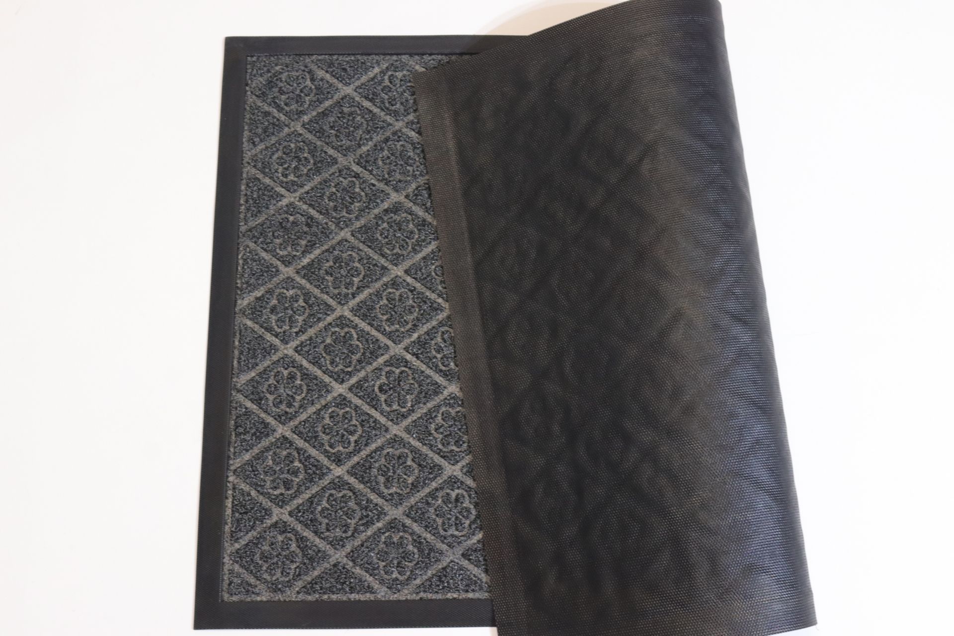 Килимок вхідної серії "Грасс" виготовлений з матеріалу, який не вбирає вологу, але затримує її. Цей не звичайний матеріал у вигляді "трави" краще за всіх вичищає бруд з взуття. З нижнього краю нанесена гумова основа, яка зменшує ковзання та не пропускає воду на підлогу.