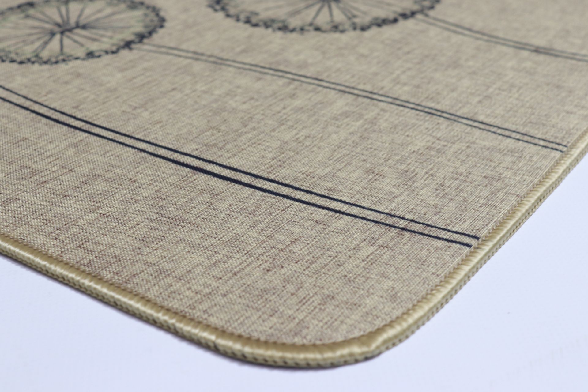 Килимок вхідної серії "Льон" виготовлений з поліестерової тканини, яка гарно вбирає воду. З нижнього краю нанесена особливо м'яка каучукова основа, яка зовсім виключає ковзання та не пропускає воду на підлогу. Дозволене автоматичне прання.