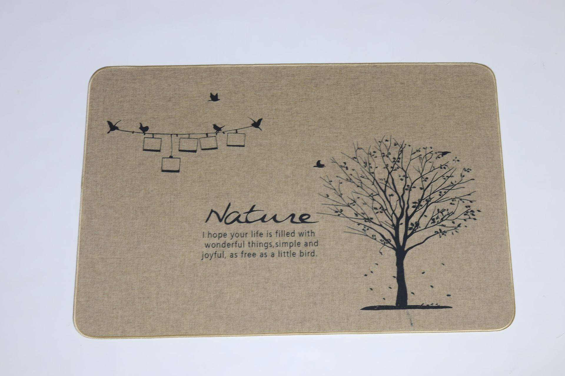 Килимок вхідної серії "Льон" виготовлений з поліестерової тканини, яка гарно вбирає воду. З нижнього краю нанесена особливо м'яка каучукова основа, яка зовсім виключає ковзання та не пропускає воду на підлогу. Дозволене автоматичне прання.