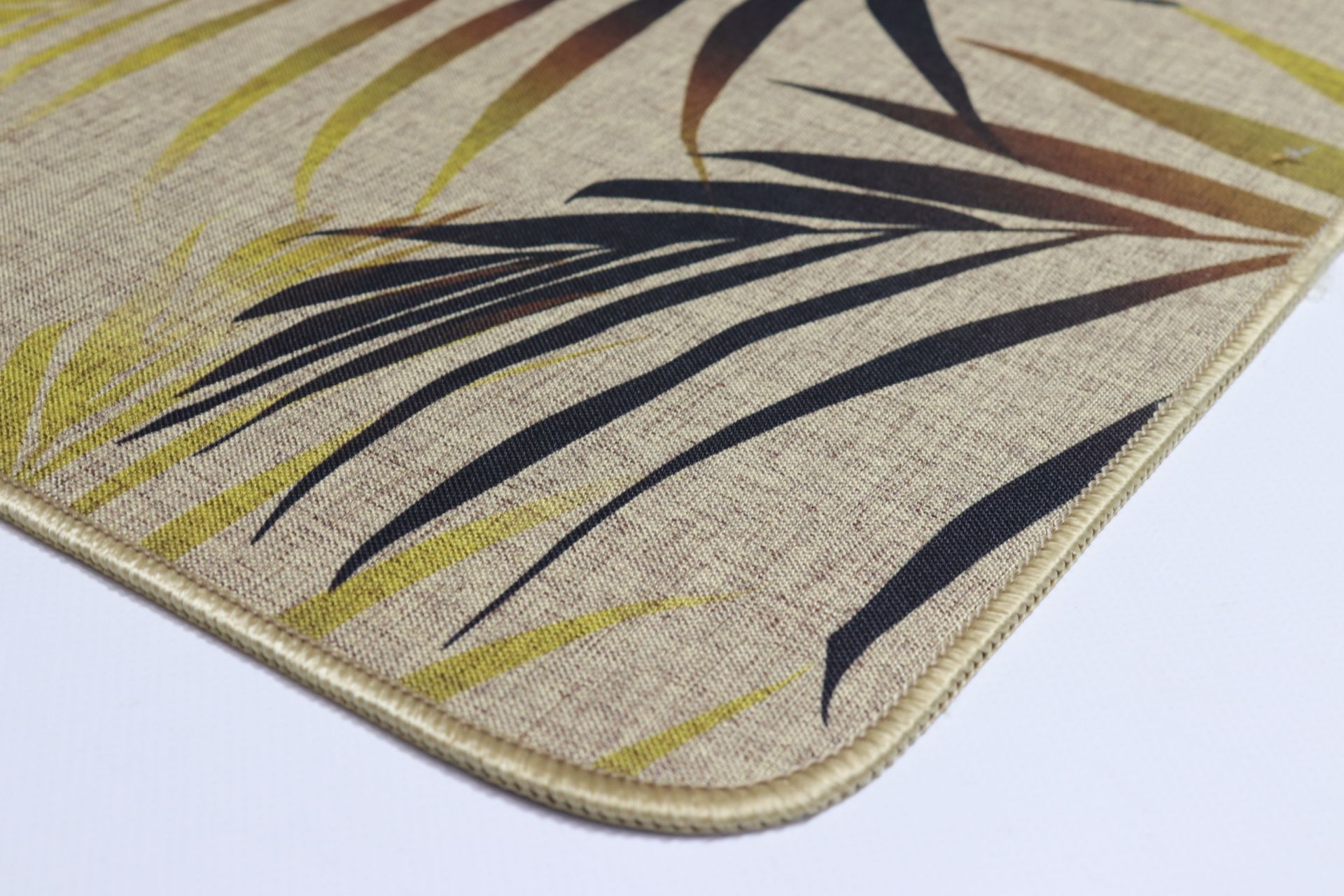 Килимок вхідної серії "Льон" виготовлений з поліестерової тканини, яка гарно вбирає воду. З нижнього краю нанесена особливо м'яка каучукова основа, яка зовсім виключає ковзання та не пропускає воду на підлогу. Дозволене автоматичне прання.