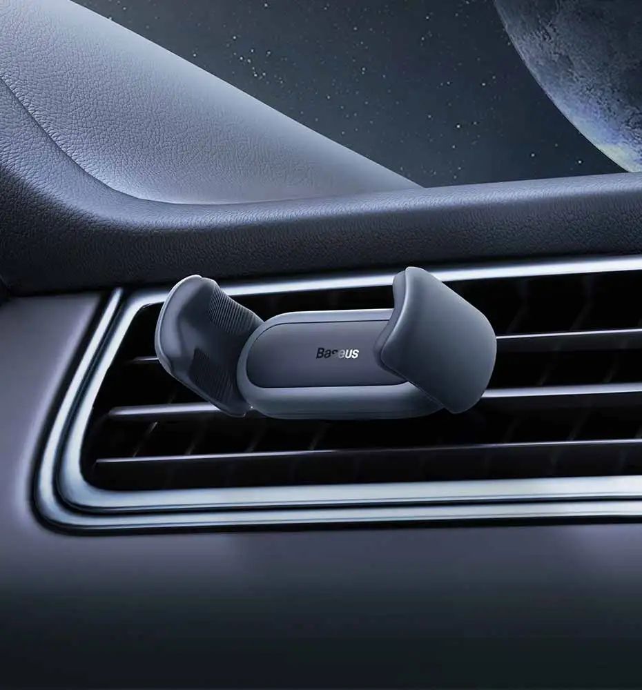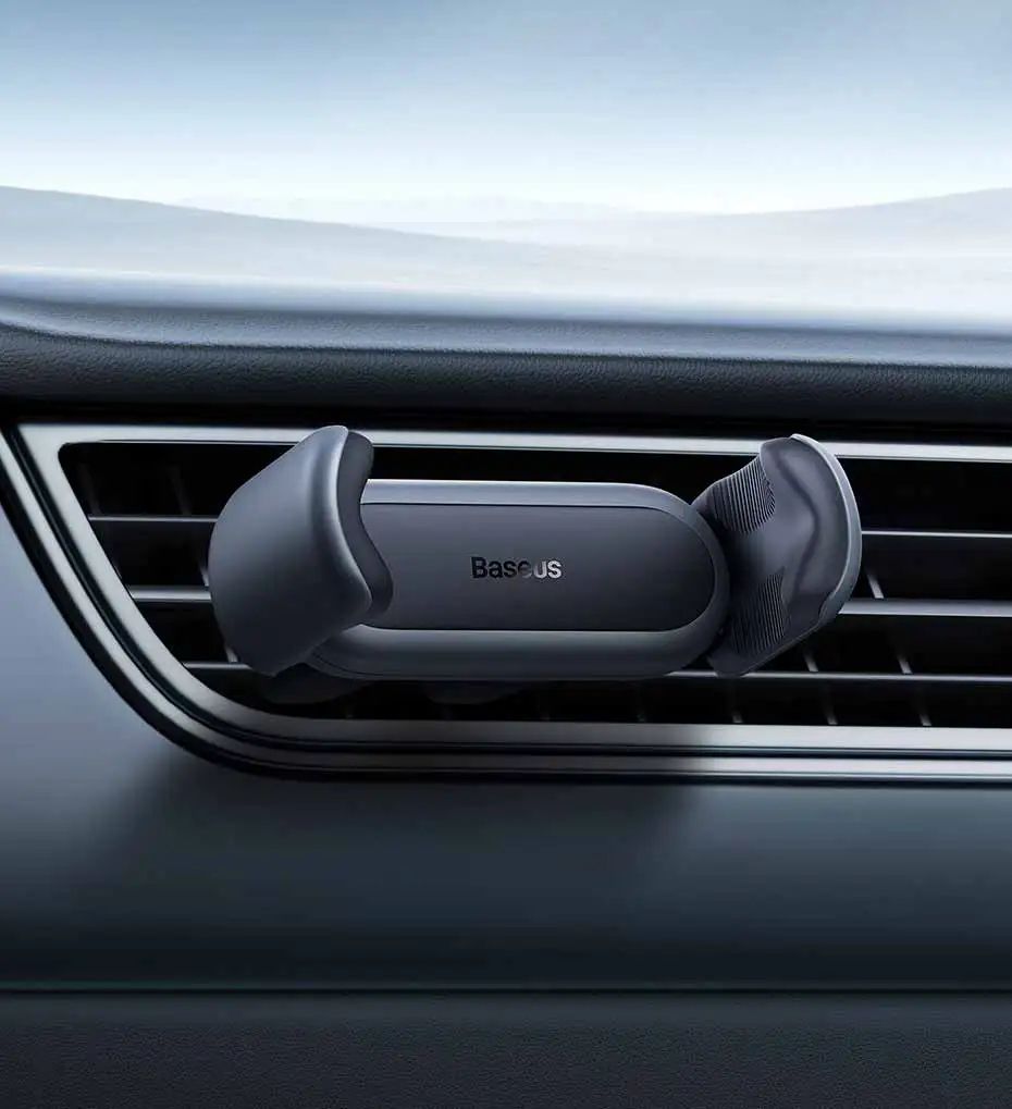 Цей автомобільний тримач є компактним та надійним рішенням для фіксації смартфона в автомобілі. Завдяки подвійному затиску та пружинному механізму він забезпечує стійке утримання пристрою навіть на нерівній дорозі. Стильний мінімалістичний дизайн не блокує потік повітря та гармонійно вписується в інтер'єр автомобіля.