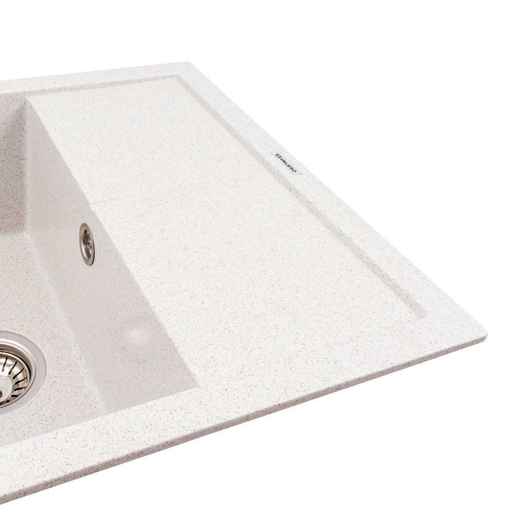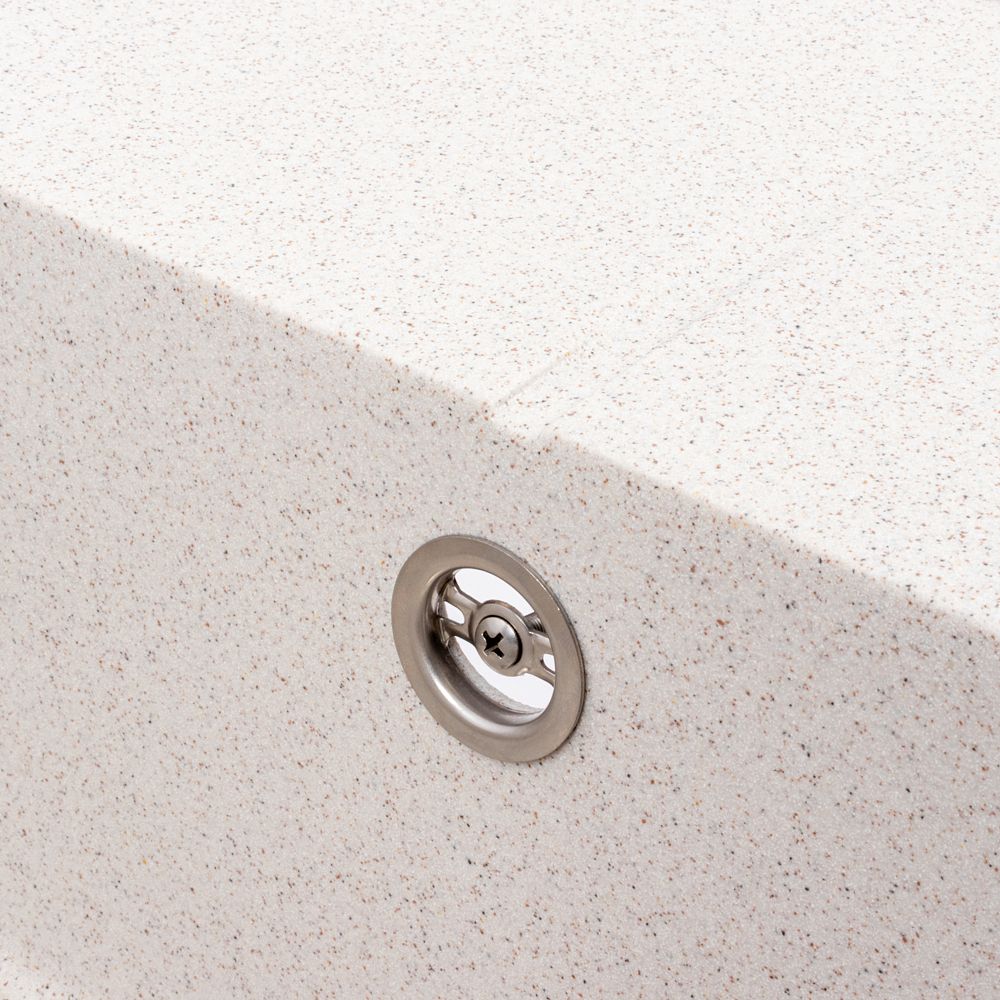 Виготовлена зі штучного каменю, ця матова мийка має виняткову стійкість до подряпин, впливу високих температур, плям та вицвітання. Вона зберігатиме свій ідеальний вигляд протягом багатьох років, що підтверджується гарантією 10 років. Модель 5850 REYNA пропонує зручну конструкцію: простора основна чаша (325x435x200 мм), розташована зліва, ідеально підходить для великого посуду, а інтегрована робоча поверхня (сушка) значно спрощує щоденні кухонні процеси. Бічний перелив запобігає переповненню води. Гранітна мийка Valeso 5850 REYNA кольору Топаз — це інвестиція у функціональність та елегантність вашої кухні.