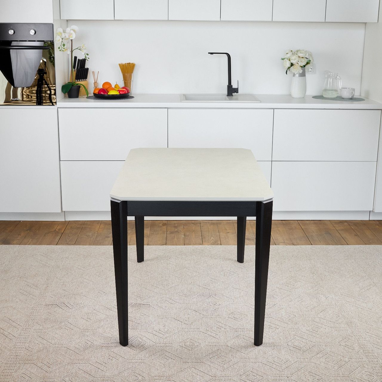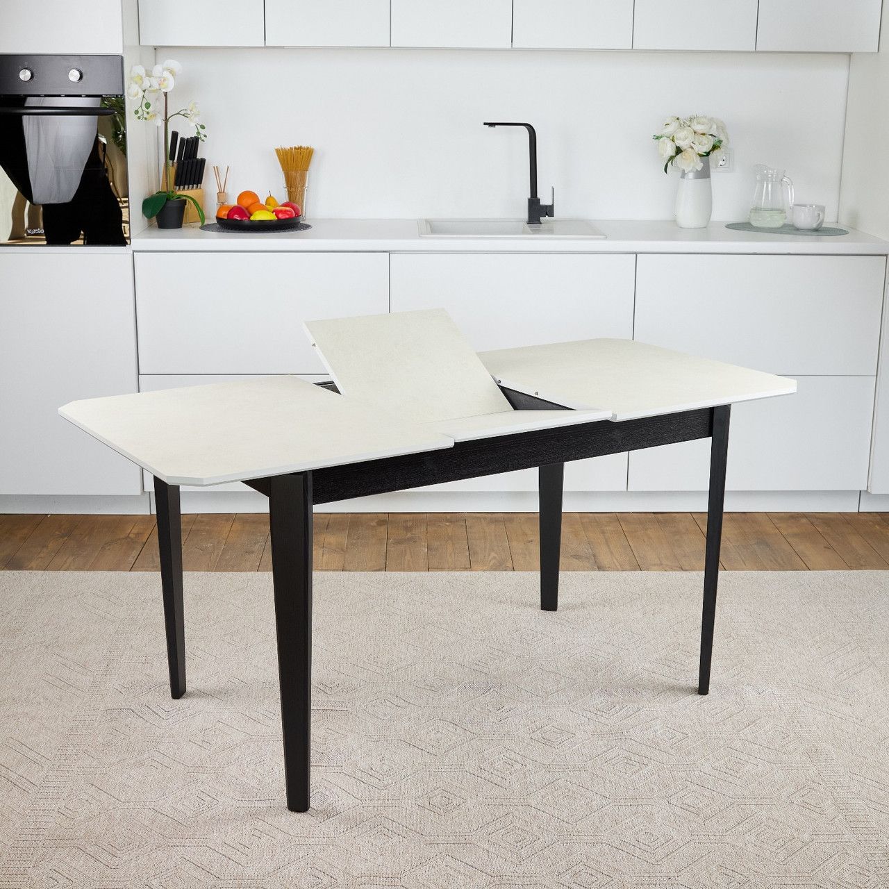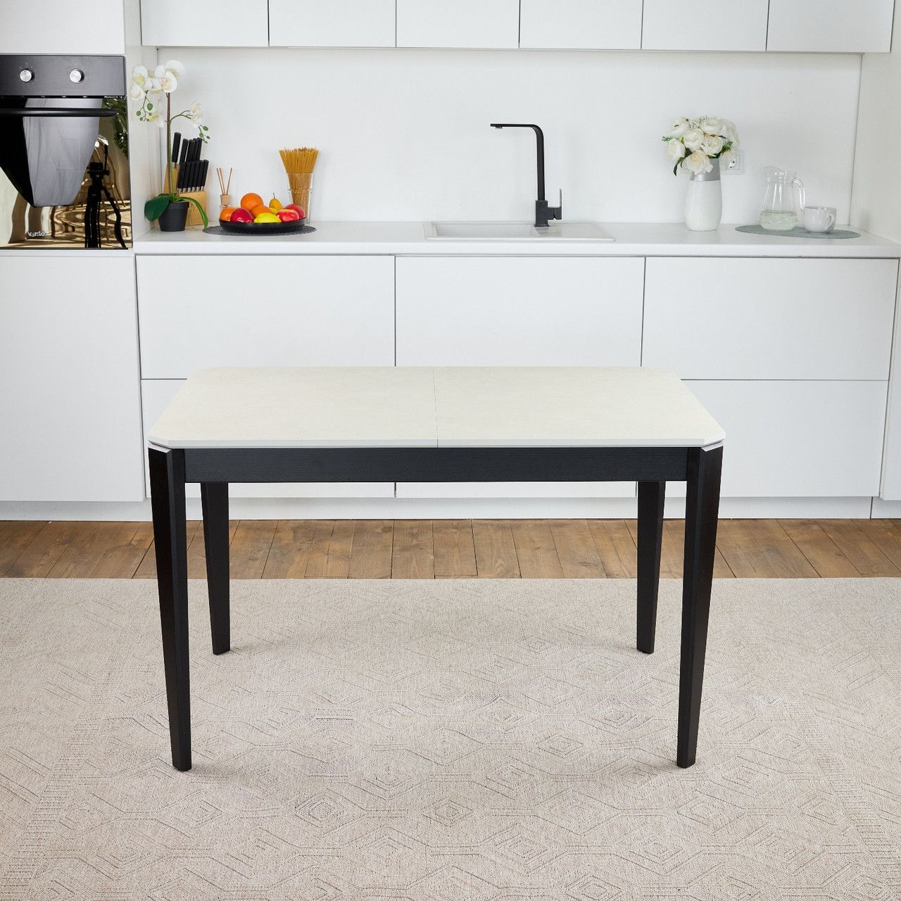 Кухонний стіл обідній розкладний Onto Рікардо 120 перлина чорні ніжки