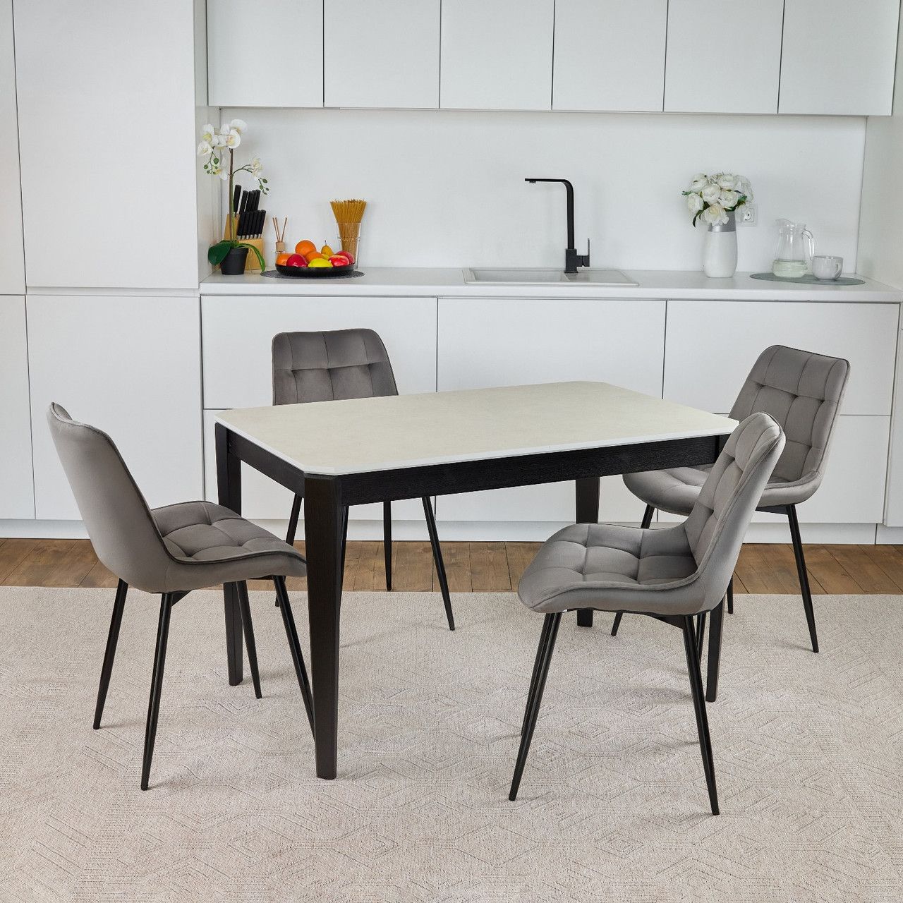 Стіл кухонний обідній розкладний Onto Рікардо 120-160 перлина чорні ніжки