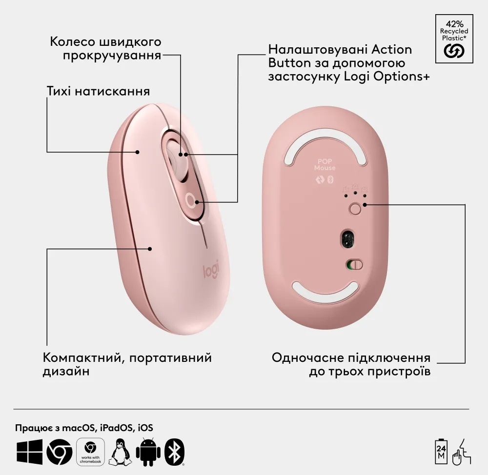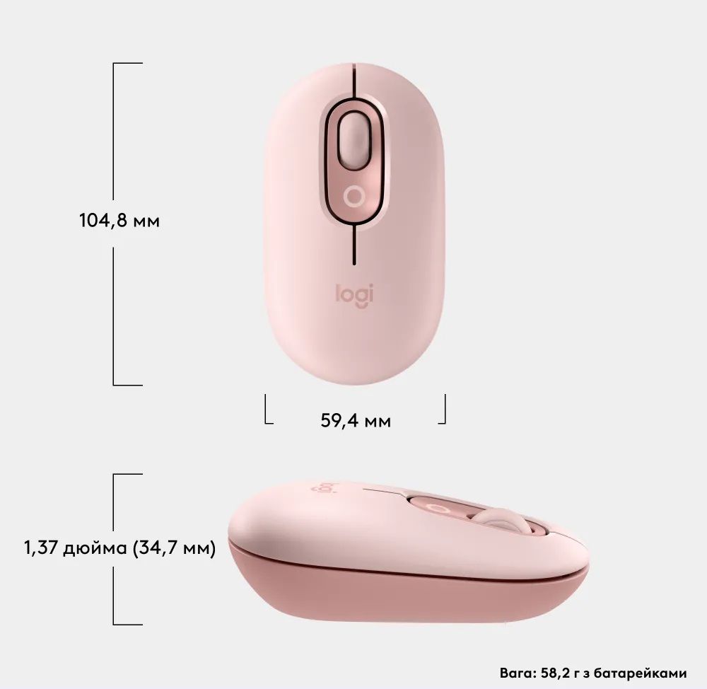 Бездротова миша Logitech POP Mouse, BT, 1xAA, 1000DPI, Tonal Rose (910-007413)