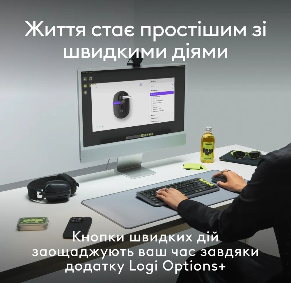 - Забезпечують налаштування швидких дій, перемикання між програмами, запуск мультимедіа або інструментів ШІ через програму Logi Options+.