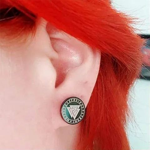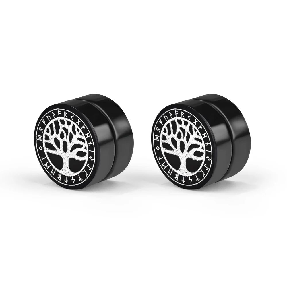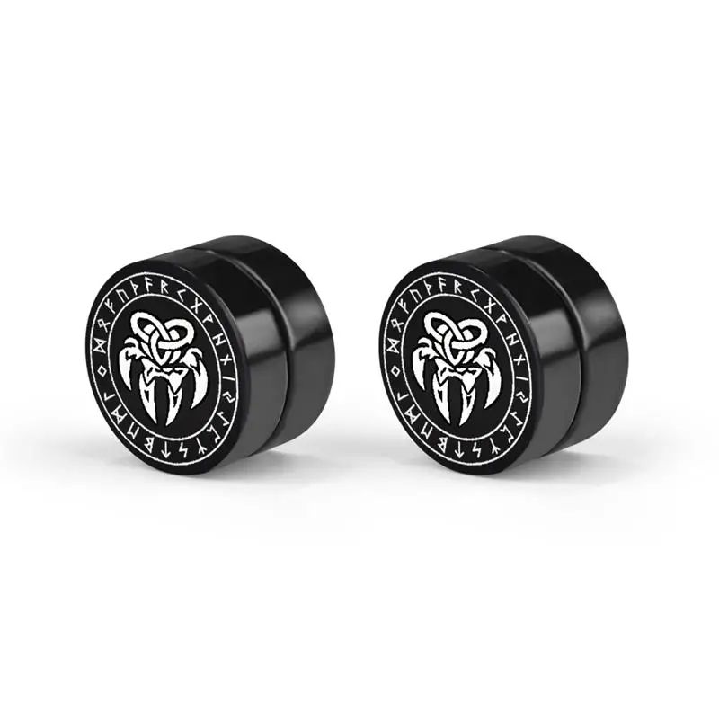 Сережка магнітна кліпса з рунами вікінгів дерево життя валькнут трікветр ведмежа лапа 1шт чорна