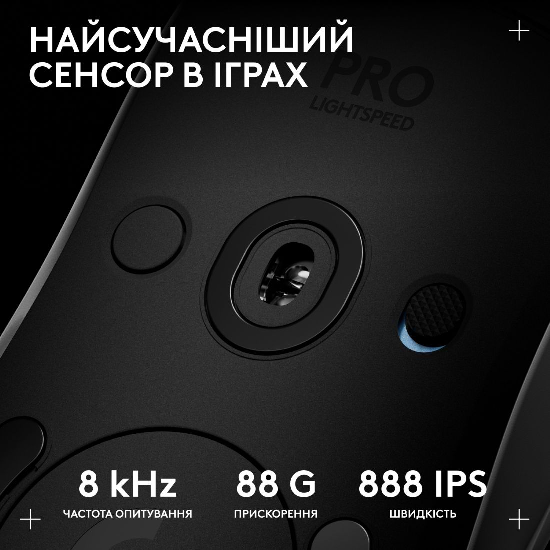 - Забезпечує максимальну точність та чуйність: до 32 000 DPI, швидкість понад 500 IPS та відстеження прискорень до 88 g.
