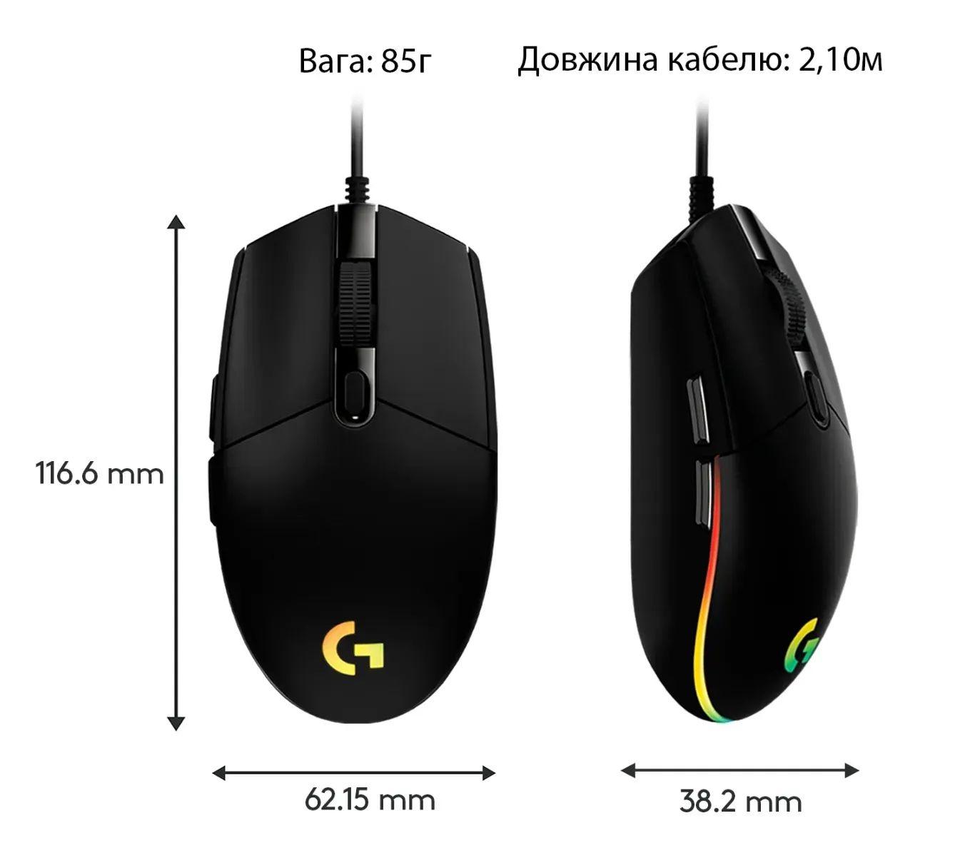 Бездротова миша Logitech G102 Lightsync, USB, 200-8000DPI, 2.1m, Black (910-005823, 910-004939, 910-004842, 910-004845, 910-005808)