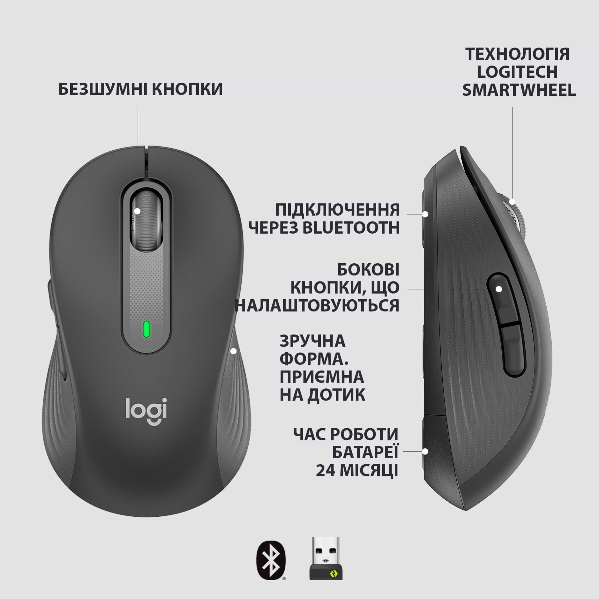 Миша Logitech Signature M650 L Wireless Mouse, BT, 1xAA, Graphite (910-006236)
