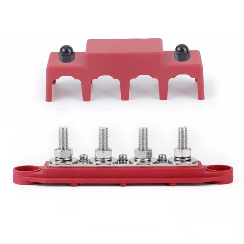 Розподільний блок з шиною Bus Bar з 4-ма шпильками М10 для з'єднання кабелів 12-48V DC, до 250A (червоний)