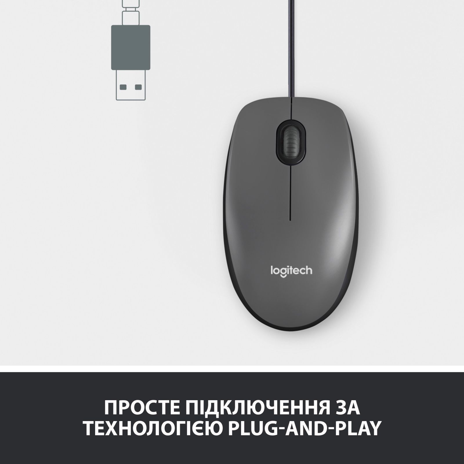 - Logitech M100 не потребує встановлення драйверів або додаткового програмного забезпечення. Просто підключіть мишу до порту USB - і вона готова до роботи.