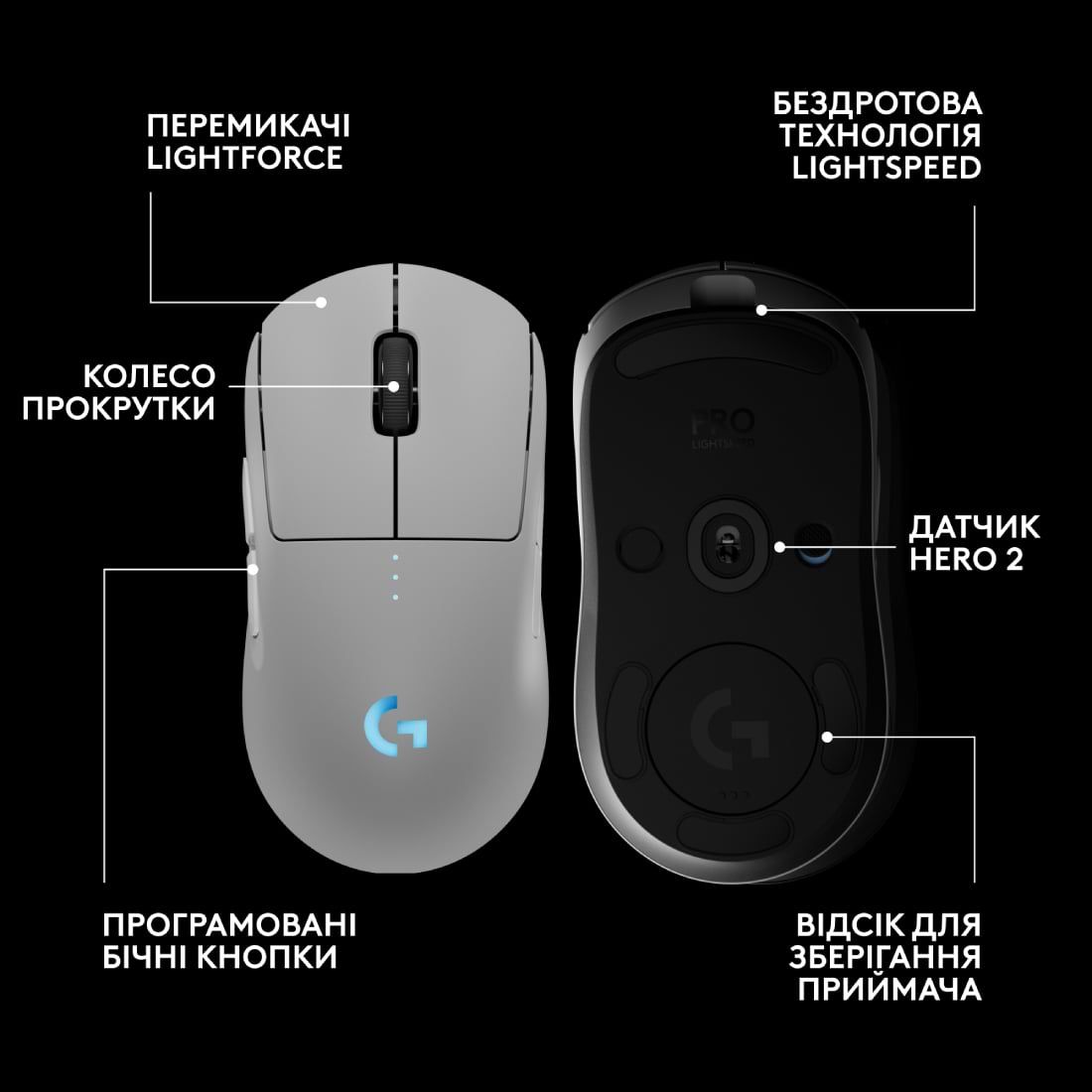 Миша Logitech G Pro X Superlight 2 Lightspeed Wireless, 32000DPI, 95h, White (910-006638, 910-006639)