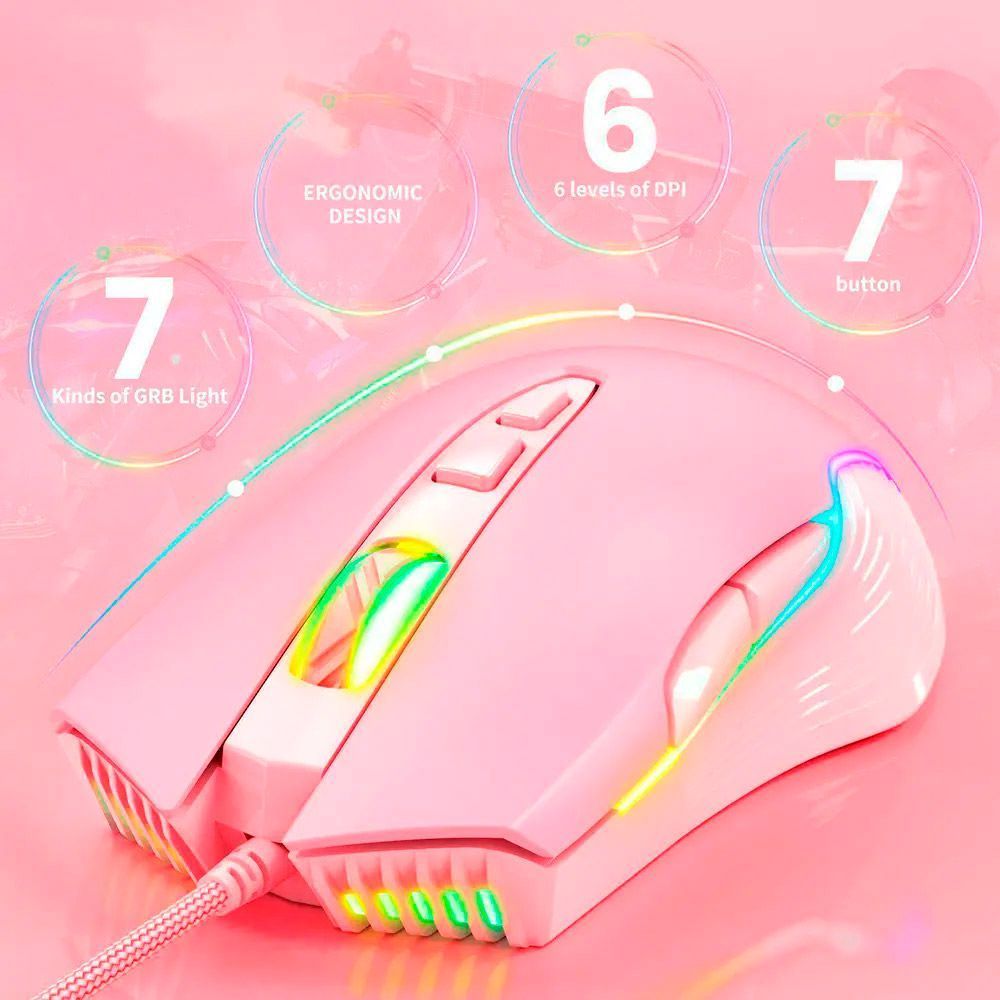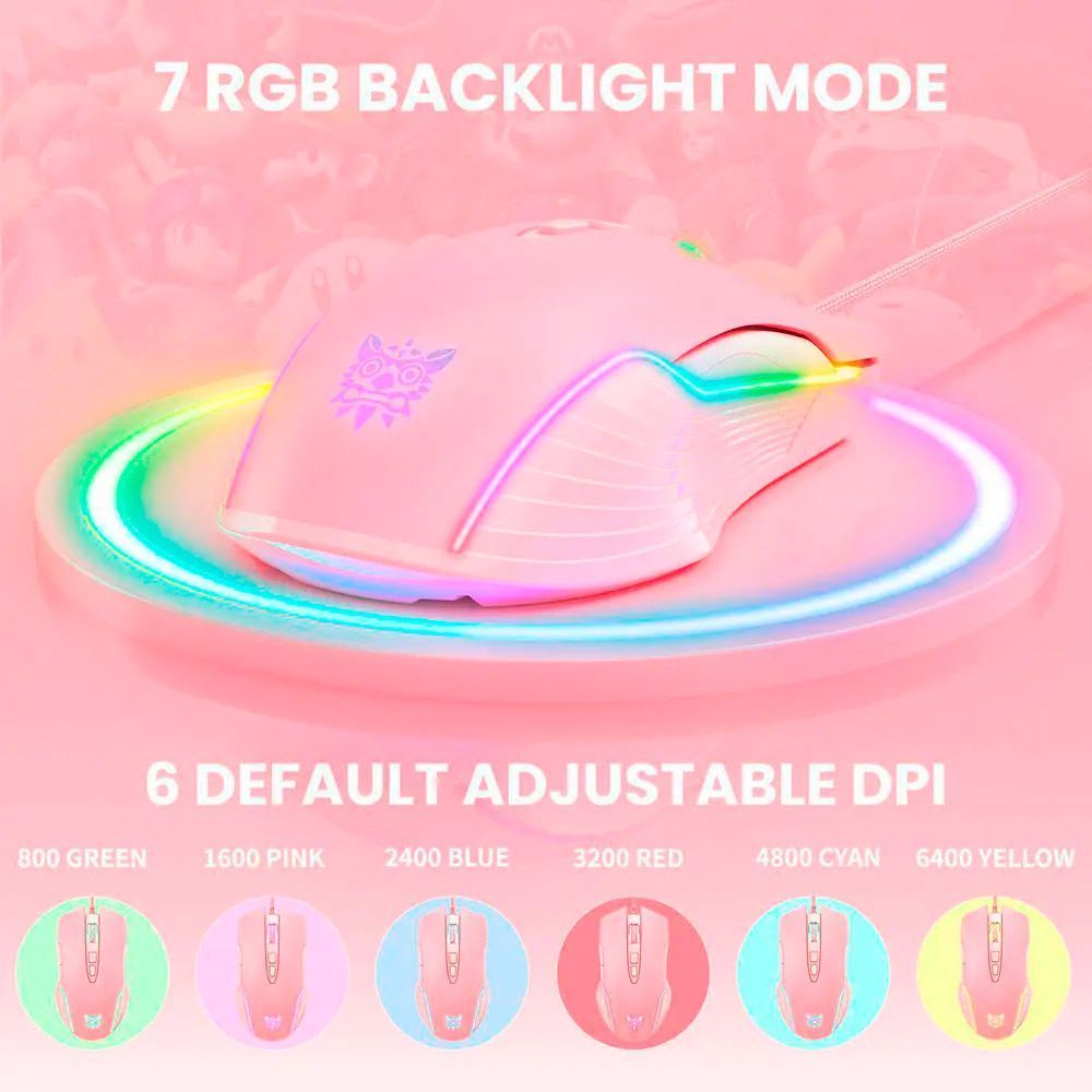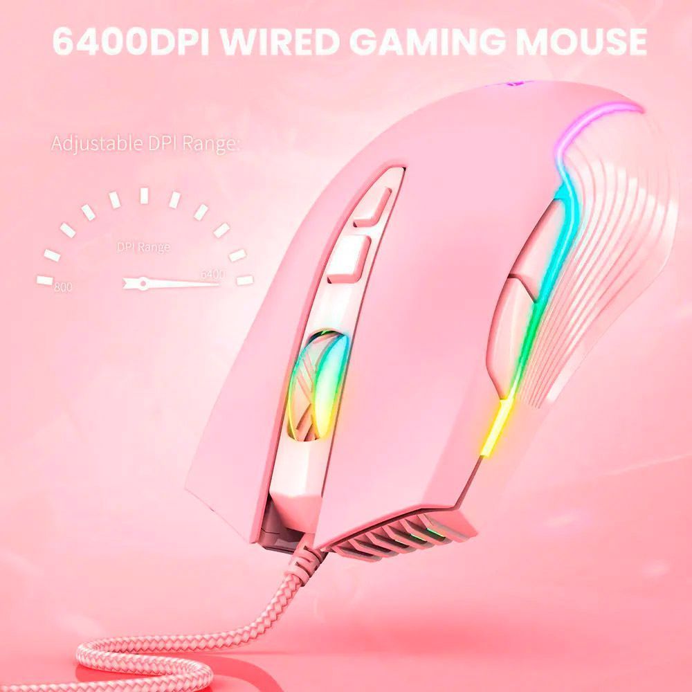Дротова миша ONIKUMA Gaming CW905, 800-6400DPI, USB, 1.5m, pink