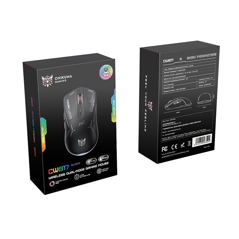 Миша Onikuma, Wired, 2.4G, RGB, Gaming Mouse, CW917, 800-4800DPI, 400mAh, 20h, black