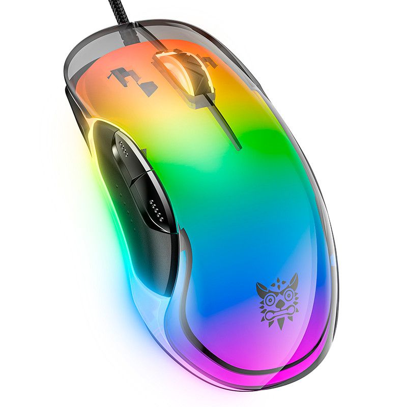 Миша Onikuma RGB Backlit Wired Gaming Mouse CW925, 800-12800 DPI, USB, 1.5m, transparent-black