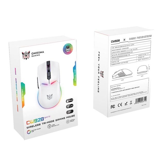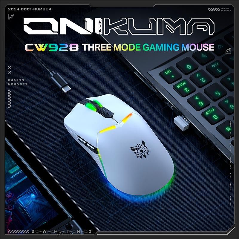 Миша Onikuma Onikuma RGB Tri-Mode Gaming Mouse CW928, 2.4G, BT, Type-C, 800-12000DPI, 700mAh, white