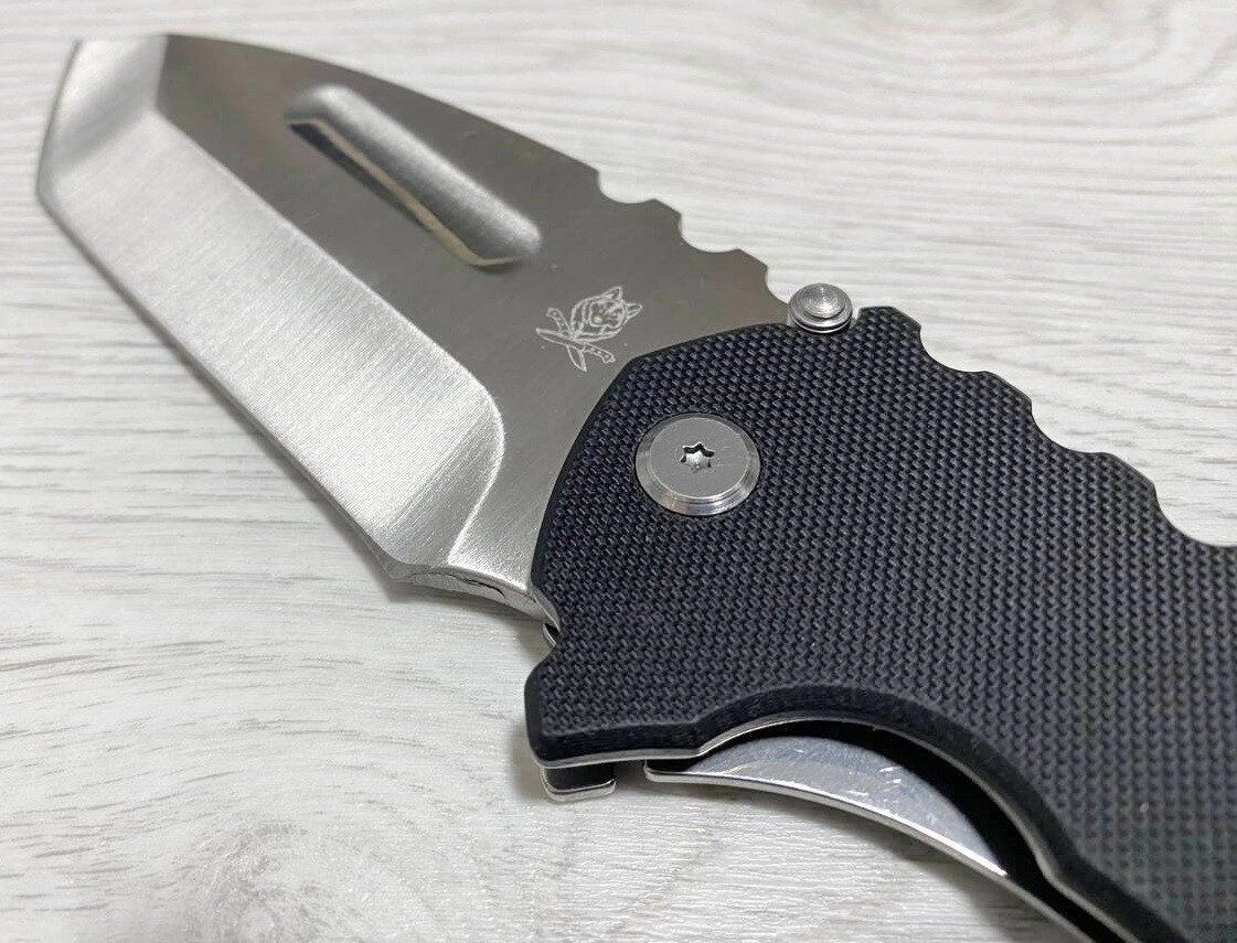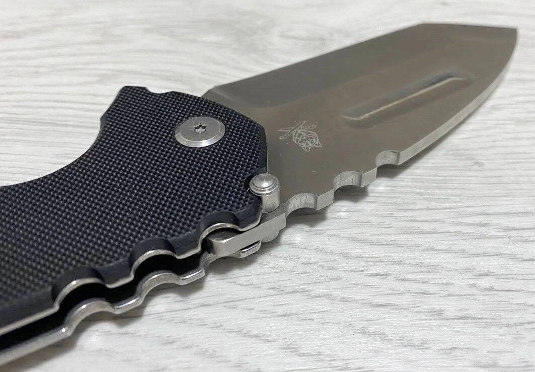 Ручка ножа виконана по технології G10 , що робить її міцною і стабільною. Рукоять оснащена кліпсою для носіння на ремені. Ручка G10 довговічна, непроникна для вологи і стабільна при екстремальних температурах.