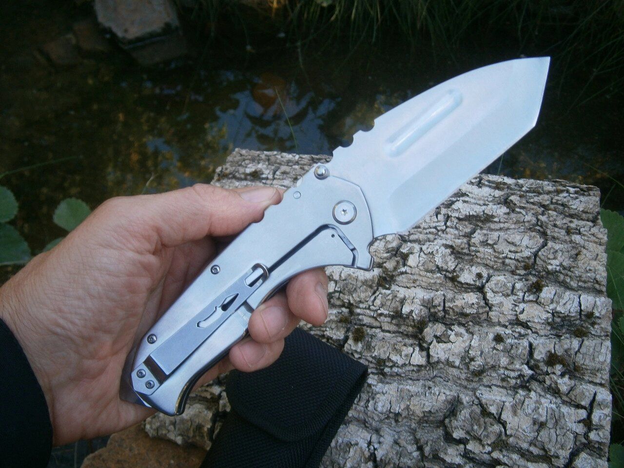 Ніж складаний "Лев" Lion RM-160 харизматичний, важкий складник-напівавтомат із замком лайнер-лок, фліппером та клинком у стилі american tanto, шириною 4,5 см.