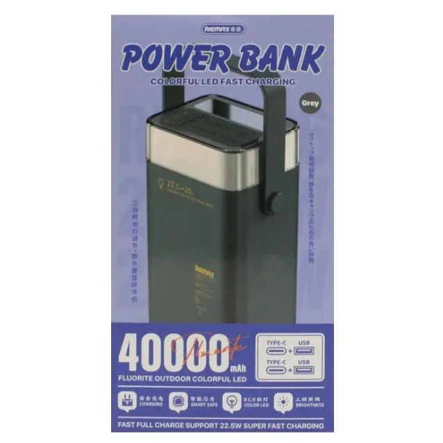 Повербанк Remax RPP-596 Fluorite, PD20W, QC22.5W, 40000 mAh, grey