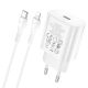 Мережевий зарядний пристрій Hoco N22, Type-C, PD, 25W, білий, кабель Type-C to Lightning