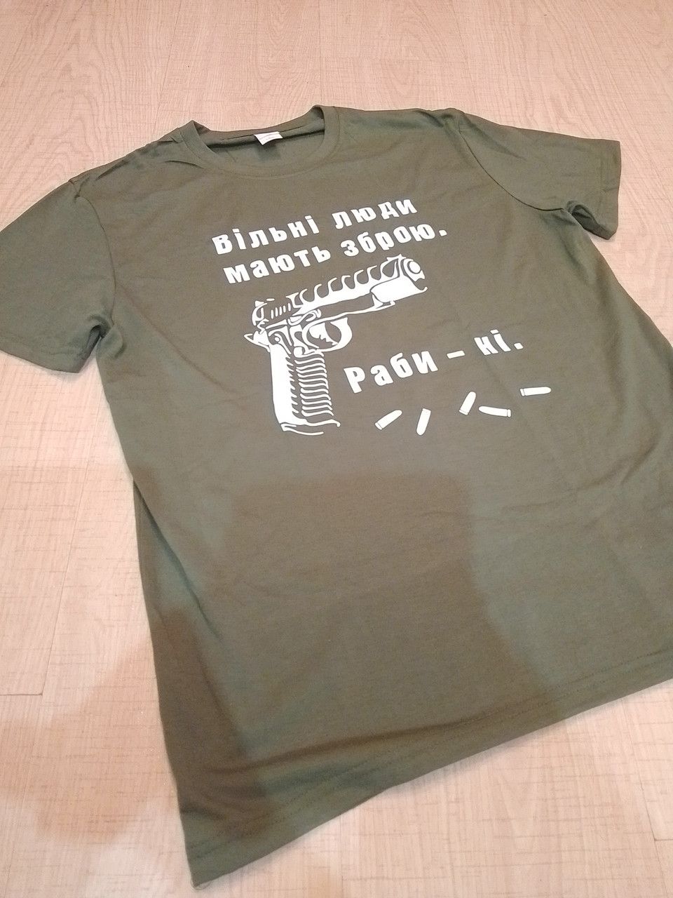 Чоловіча футболка хакі прінт Вільні люди мають зброю.