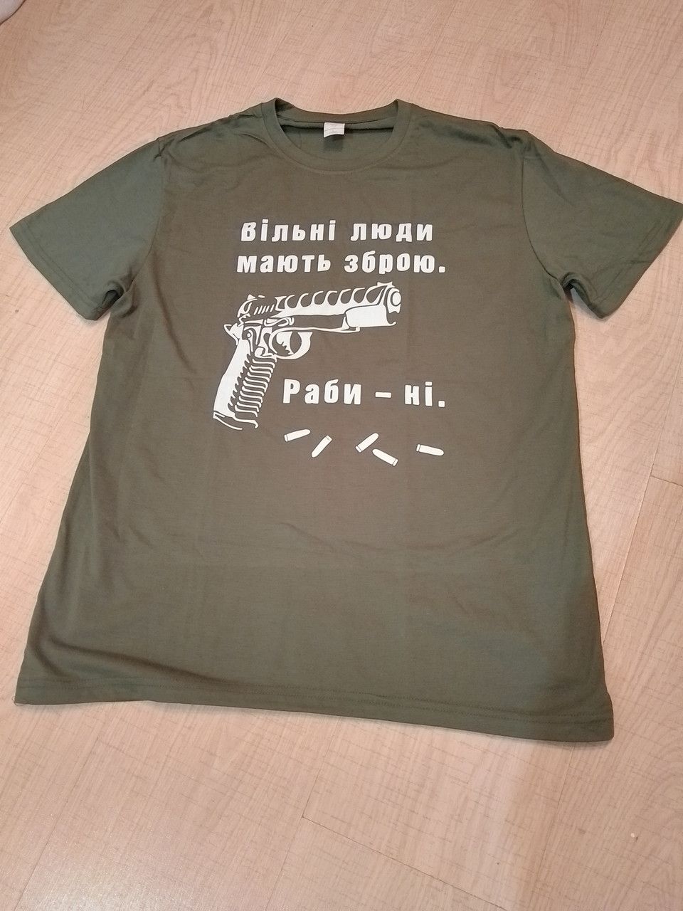 Чоловіча футболка хакі прінт Вільні люди мають зброю L