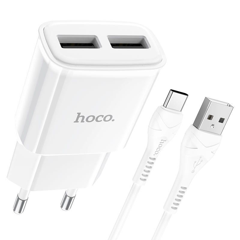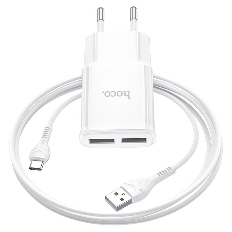 Мережевий зарядний пристрій Hoco C88A, 2USB, 2.4A, кабель Type-C, White