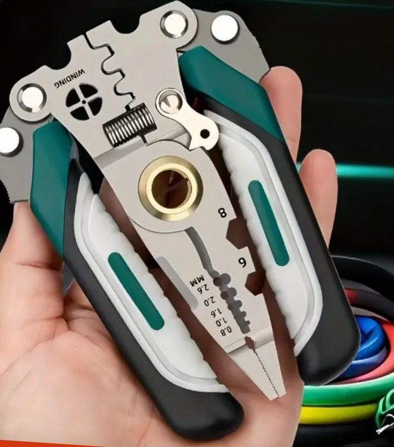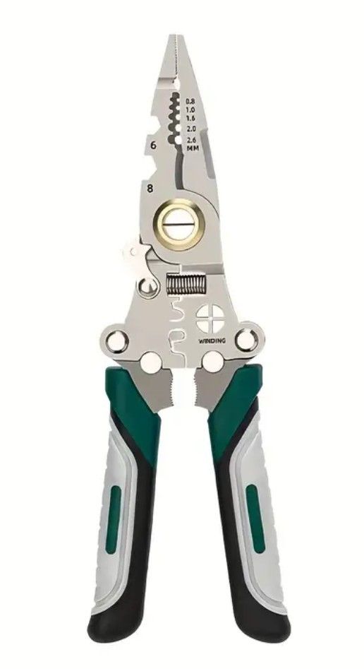 Складні Багатофункціональні Плоскогубці для Електриків - Міцна Високовуглецева Сталь з Інструментами для Зняття Ізоляції, Різаками та Обтискними Кліпсами - Компактний Дизайн для Роботи з Електрикою на Ходу - Зелені Ручки, Універсальні Зйомники | Ергономічні ручки | Багатофункціональний Інструмент