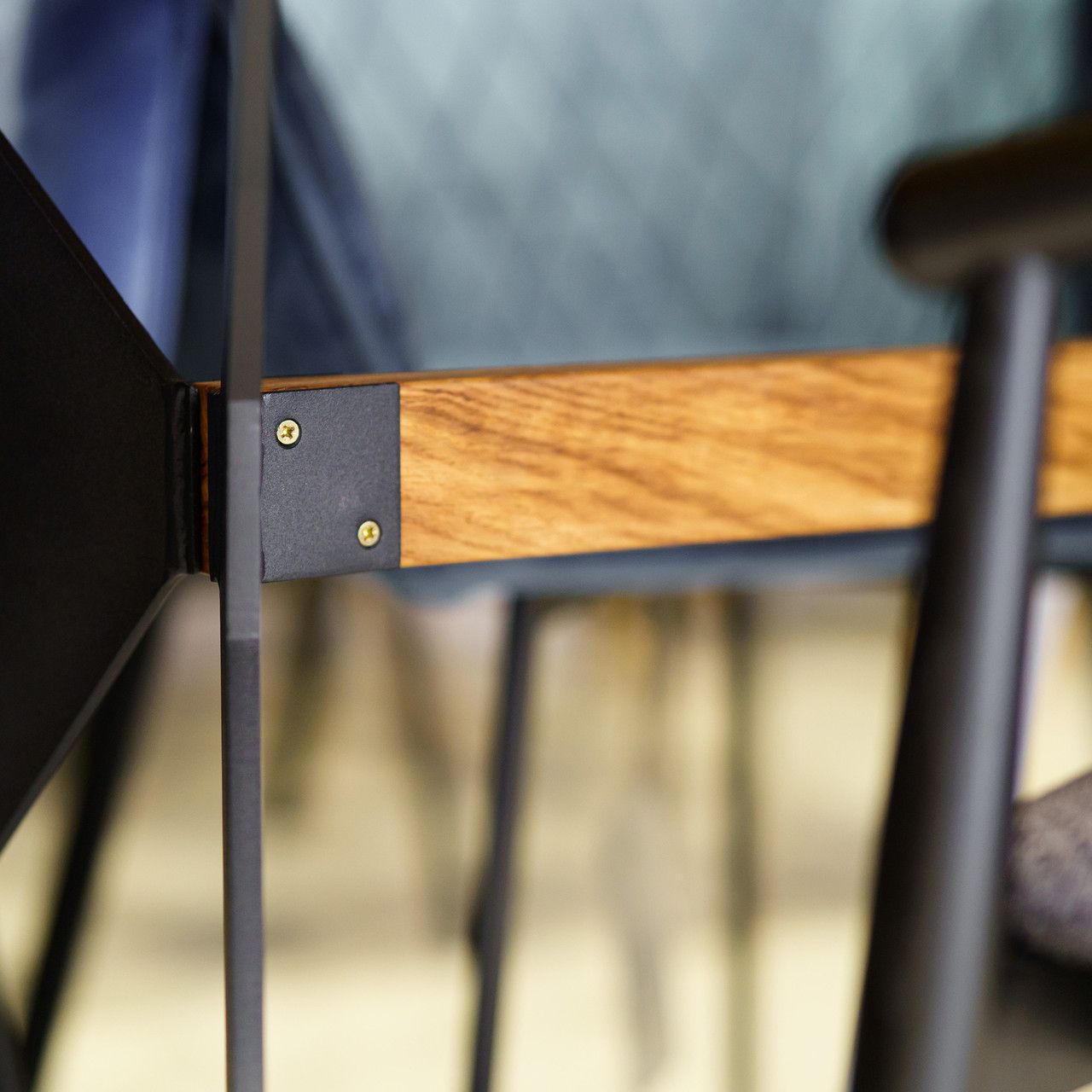 Під час виробництва використовуються винятково високоякісні матеріали, що робить модель не тільки привабливою, але й довговічною. Стійкі ніжки виконані з металу з порошковим фарбуванням, а стільниця з масиву дуба.