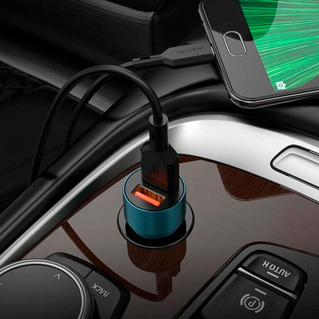 Автомобільний зарядний пристрій Borofone BZ19 Wisdom, кабель USB to MicroUSB, 2.4A, Сапфірово-синій