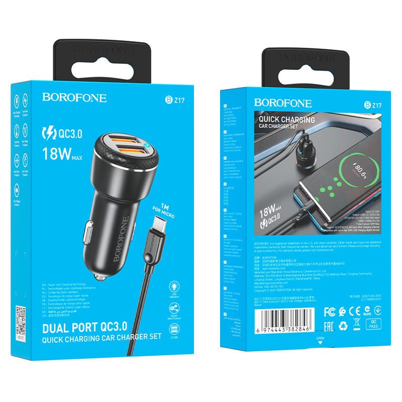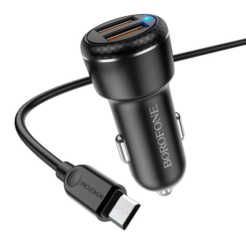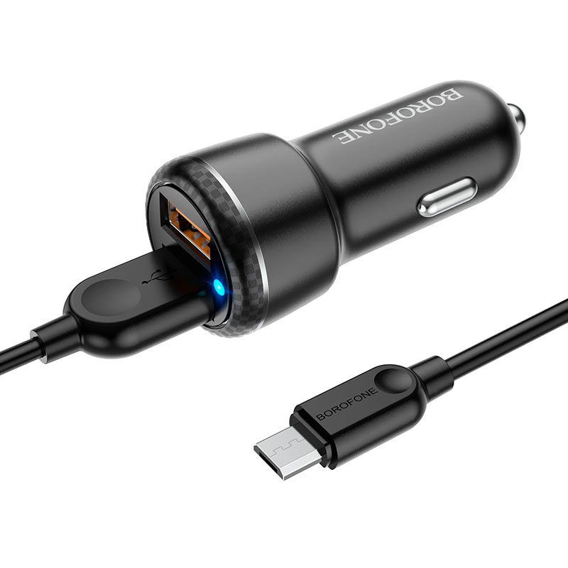 Автомобільний зарядний пристрій Borofone BZ17, QC3.0, 18W, кабель USB to MicroUSB, Чорний