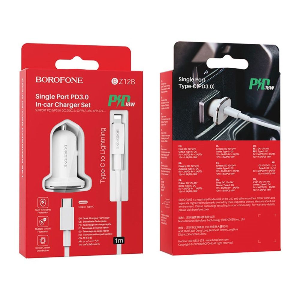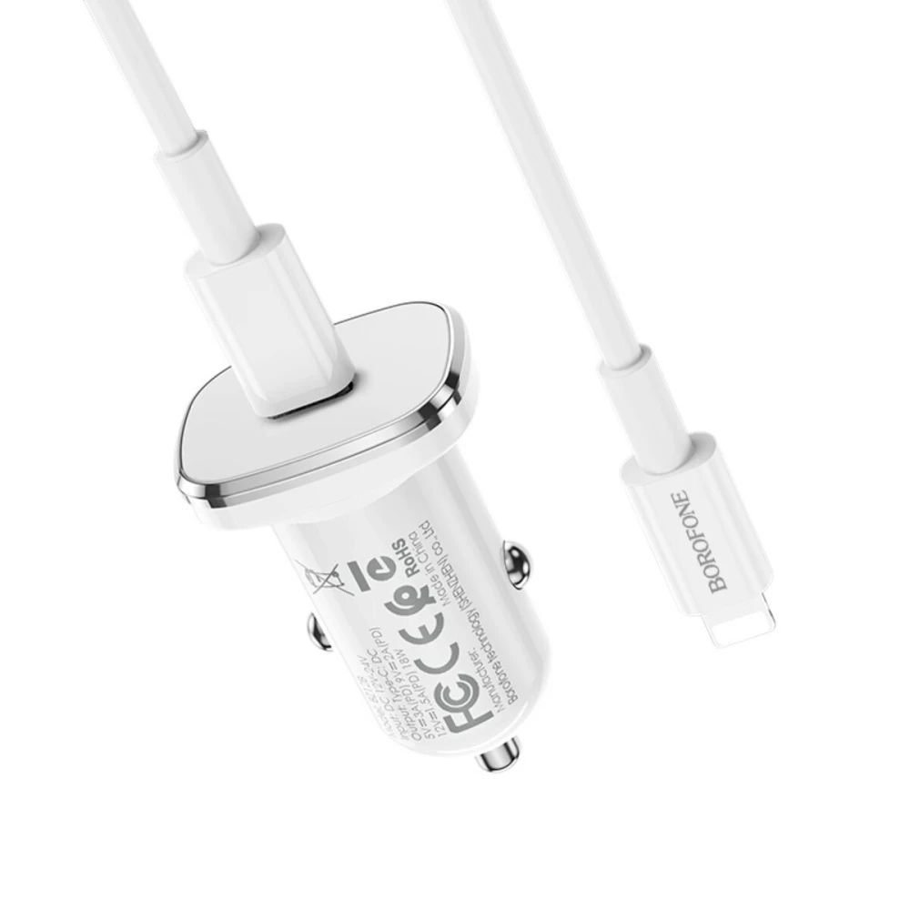 Автомобільний зарядний пристрій Borofone BZ12B, Type-C, PD, білий, кабель Type-C to Lightning