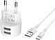 Мережевий зарядний пристрій Borofone BA23A, кабель USB to MicroUSB, 2USB, 2.4A, White
