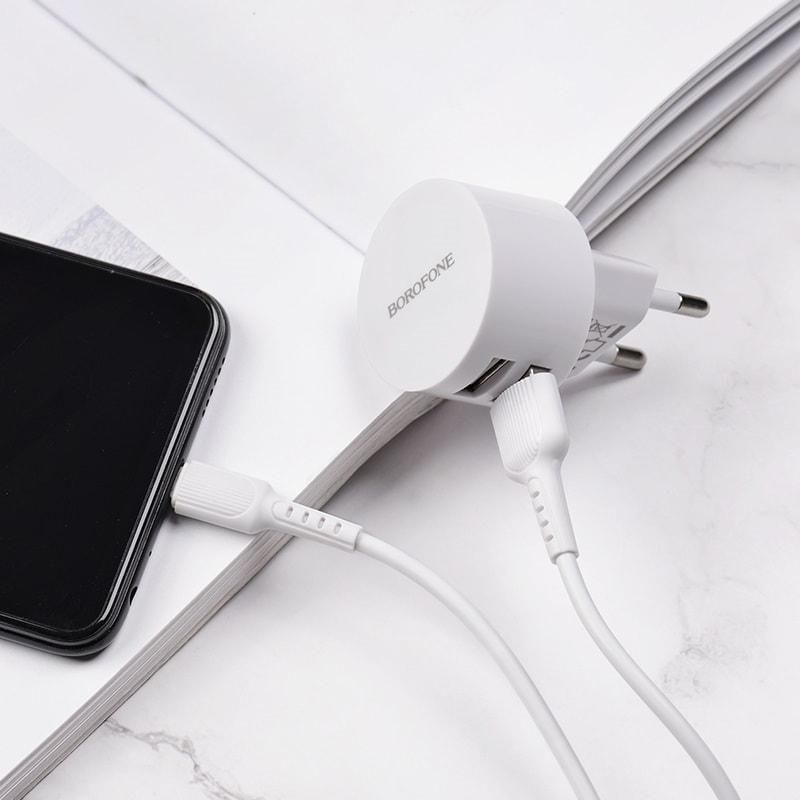 Мережевий зарядний пристрій Borofone BA23A, кабель USB to MicroUSB, 2USB, 2.4A, White