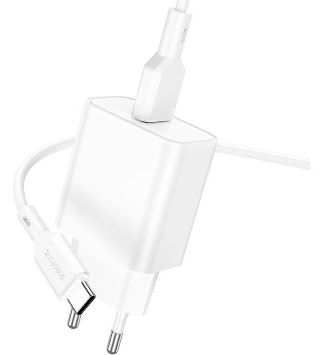 Мережевий зарядний пристрій Borofone BA82A 1USB-C PD/QC 25W+Type-C to Lightning Білий