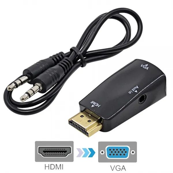 Це універсальне рішення для підключення пристроїв із цифровим HDMI-виходом до аналогових дисплеїв із VGA-входом. Адаптер конвертує відео з HDMI на VGA, одночасно забезпечуючи передачу аудіо через 3.5 мм мініджек. Він ідеально підходить для ноутбуків, телевізійних приставок, медіаплеєрів, проекторів та інших пристроїв, які не мають VGA-вихід.
