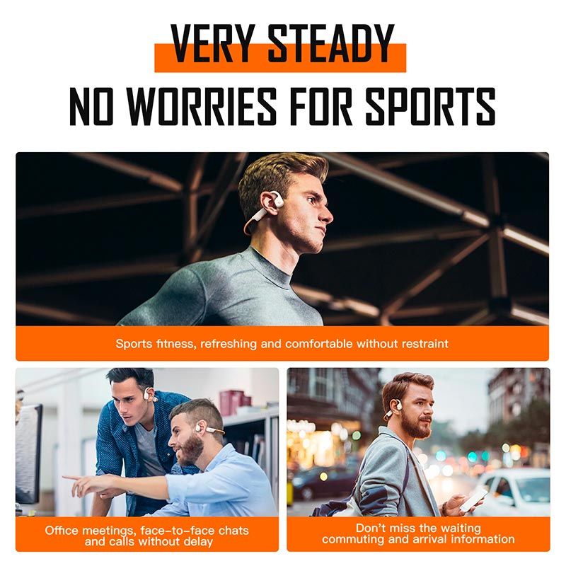 - Onikuma T37 передають звук через кістки черепа, залишаючи вушний канал вільним. Це дозволяє слухати музику, не ізолюючись від зовнішніх звуків, що безпечно при заняттях спортом або прогулянках на вулиці.